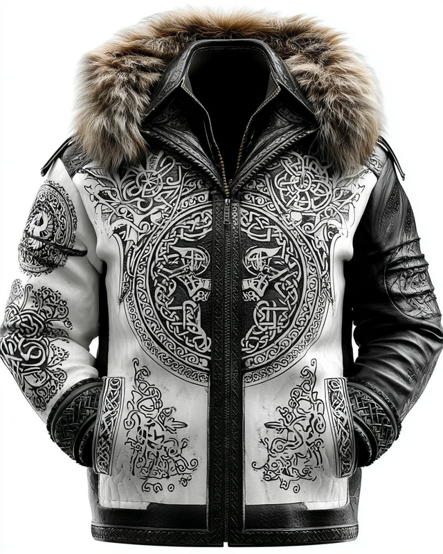 Winter Hooded Fashionable Leather Warm Plush Jacket 3645