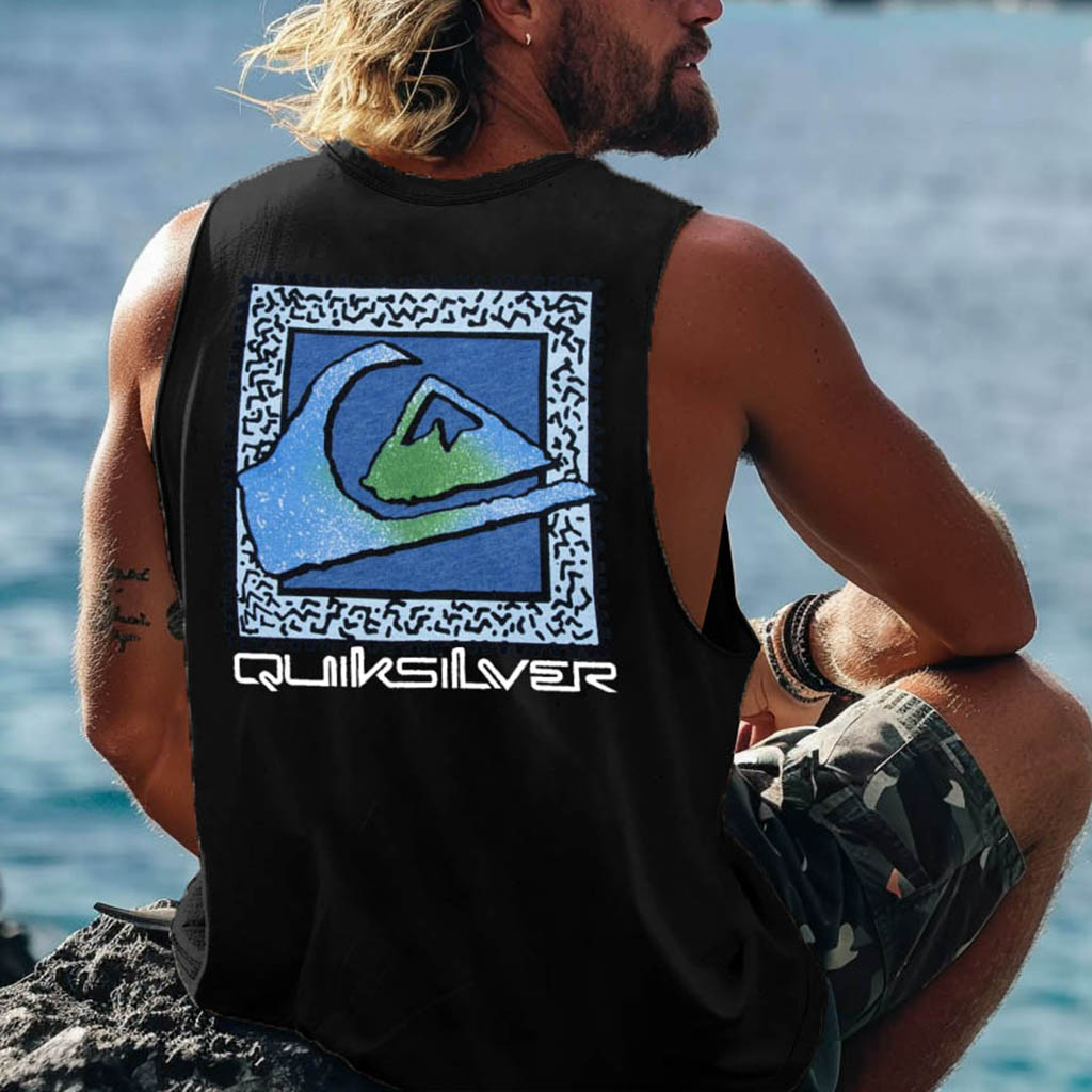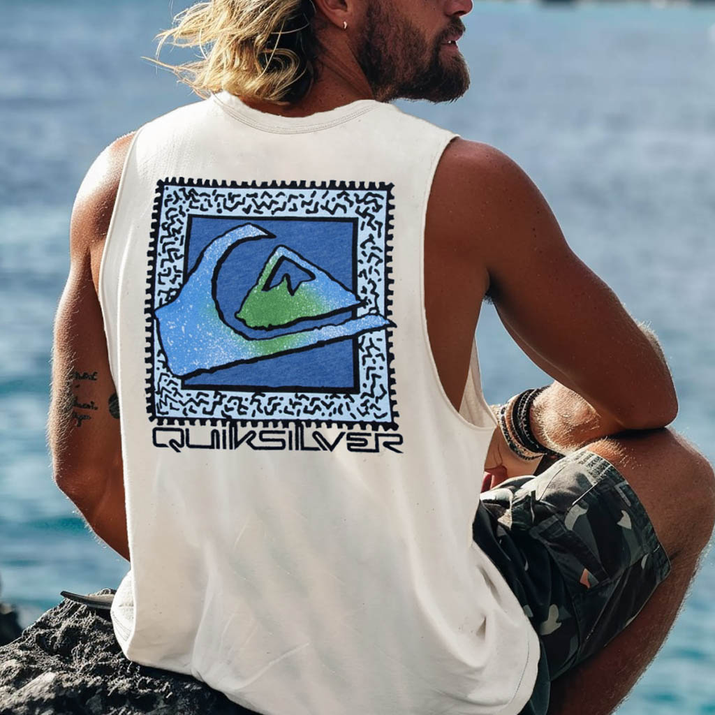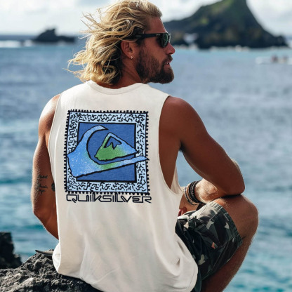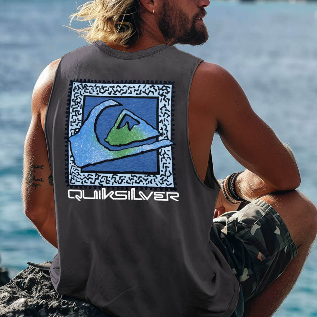 Men's Vintage Surfing Co Mountain Print Round Neck Sleeveless Tank Top