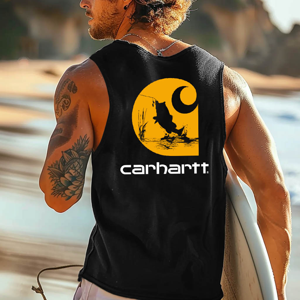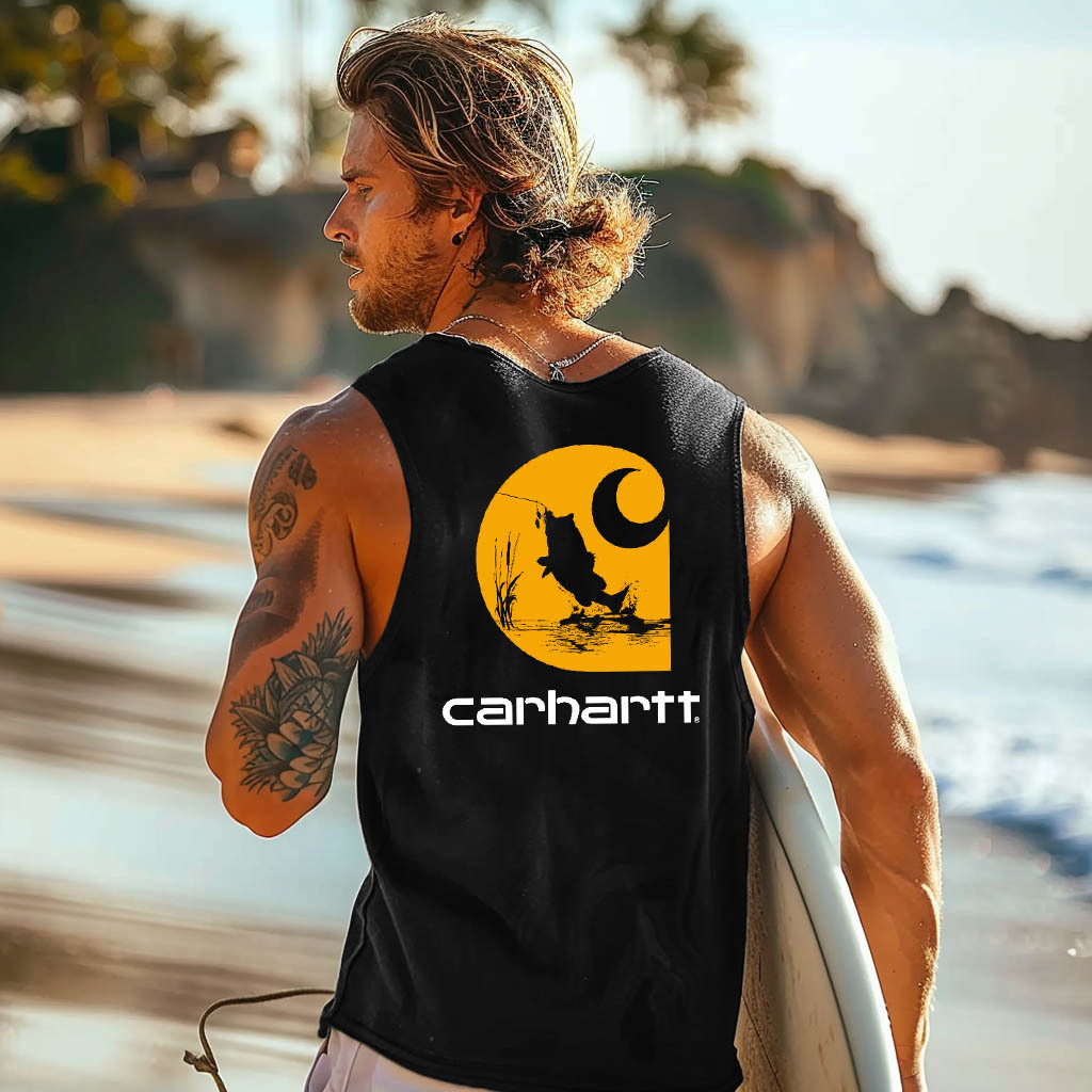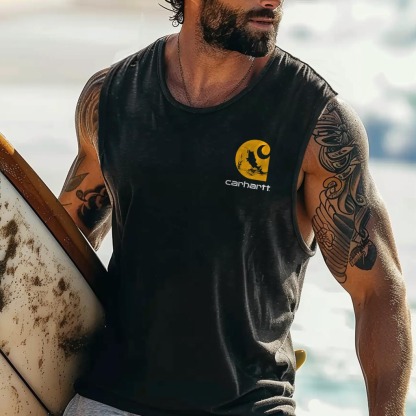 Men's Vintage Surfing Fishing Print Round Neck Sleeveless Tank Top
