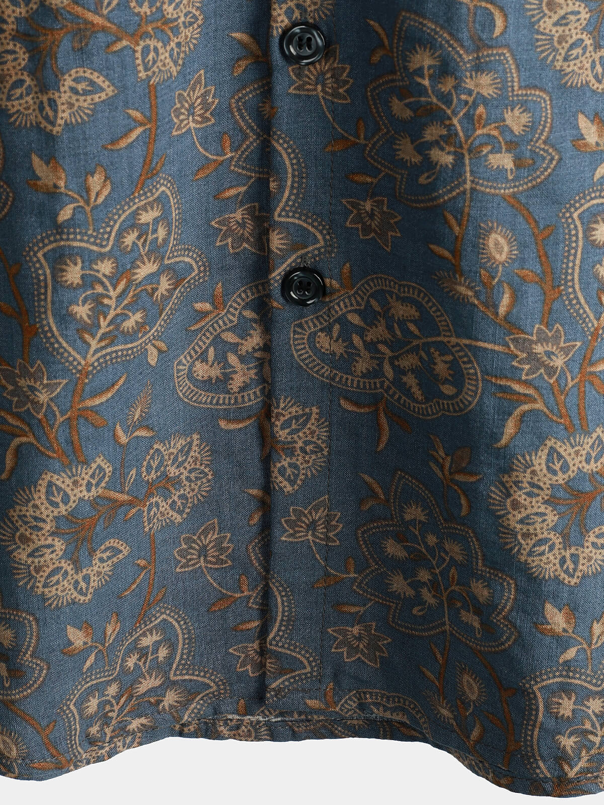 Retro Button-Up Short Sleeve Beach Shirt for Men Vintage Paisley Floral 70s