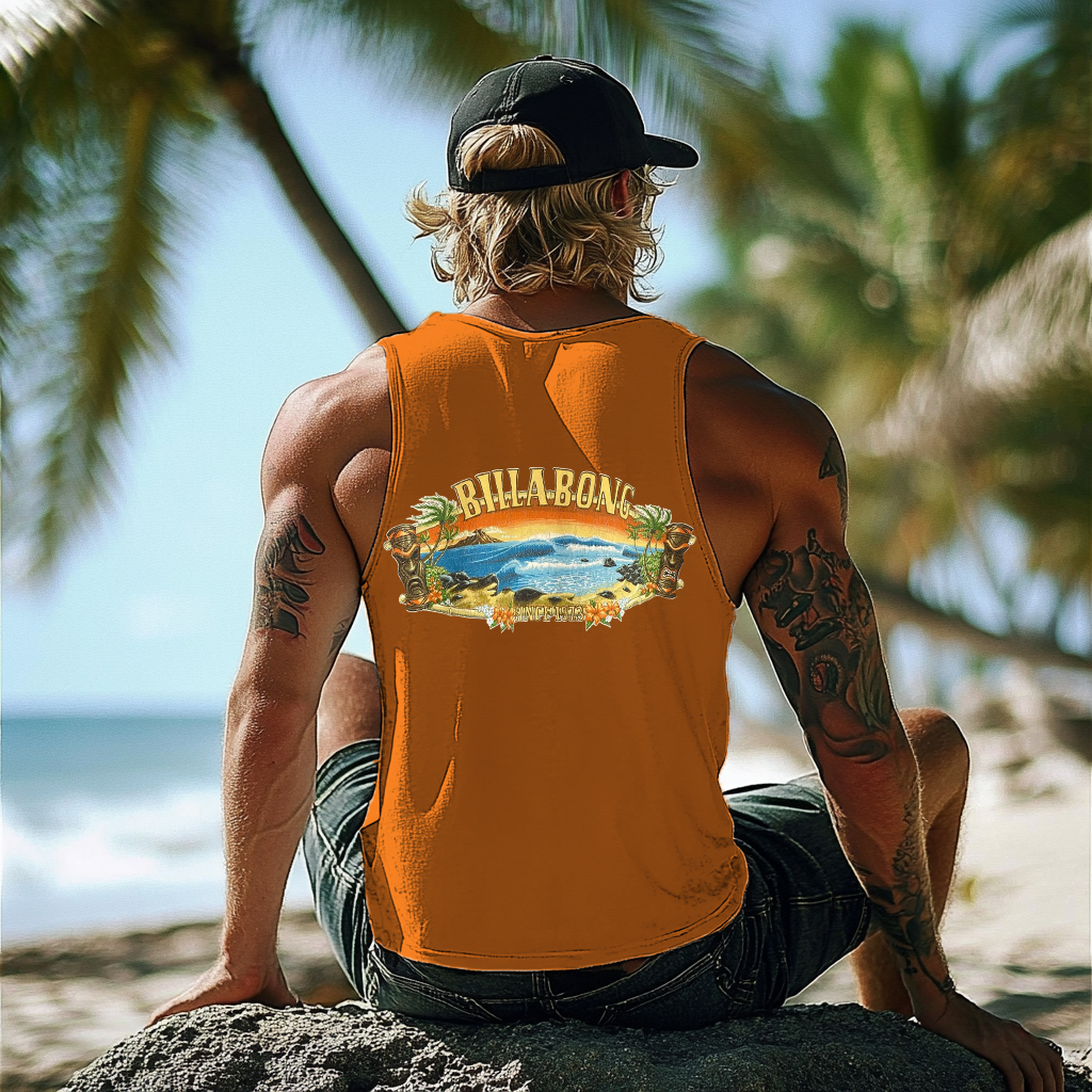 Vintage Unisex Beach Vacation Surf Logo Print Sleeveless Tank Top