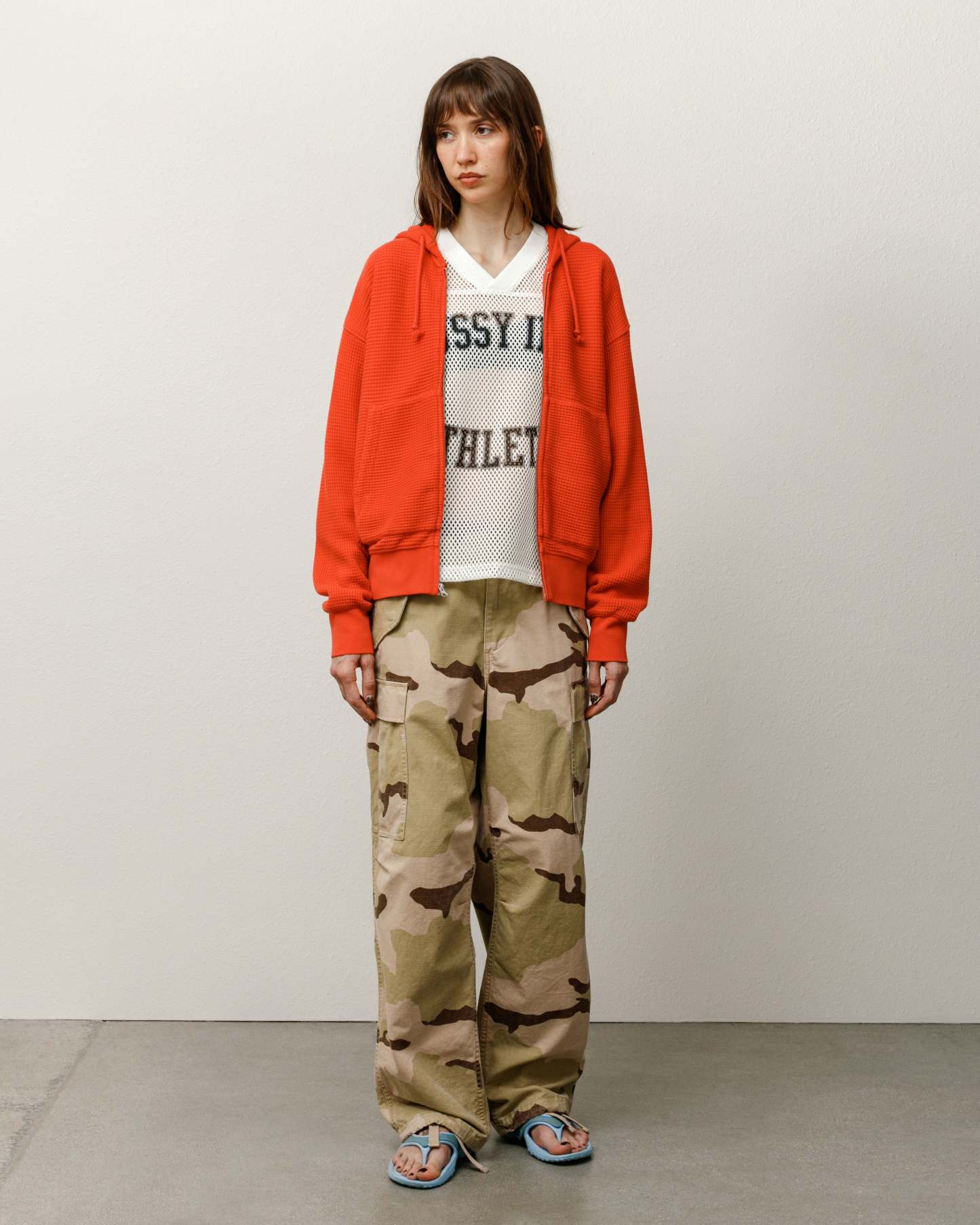 DOUBLE LAYER WAFFLE ZIP HOODIE