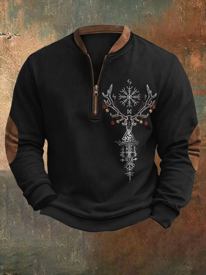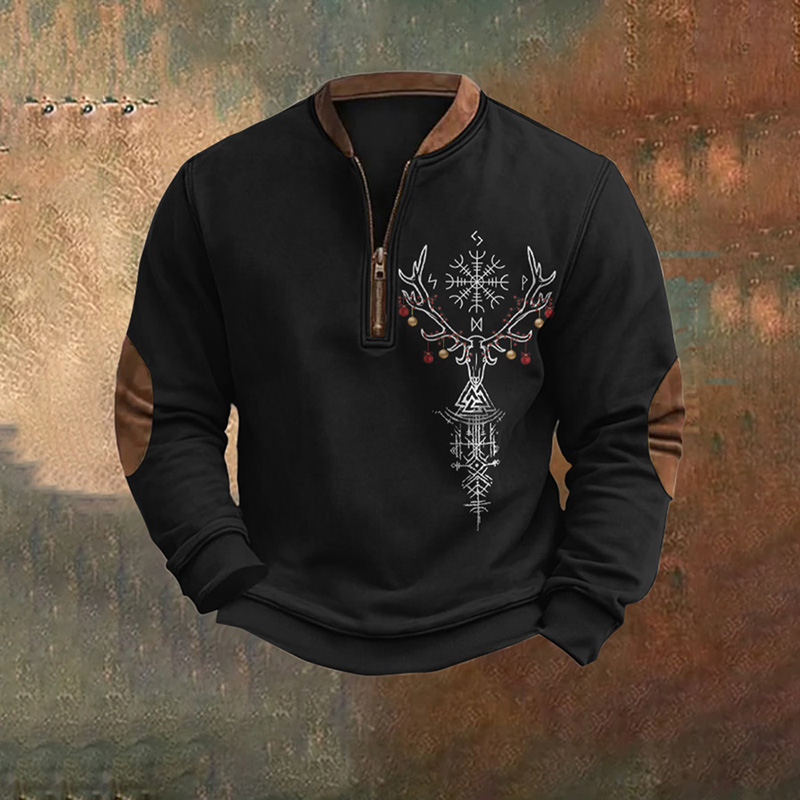 Viking Runes Reindeer Graphics Christmas Viking Inspired Zipper Hoodie