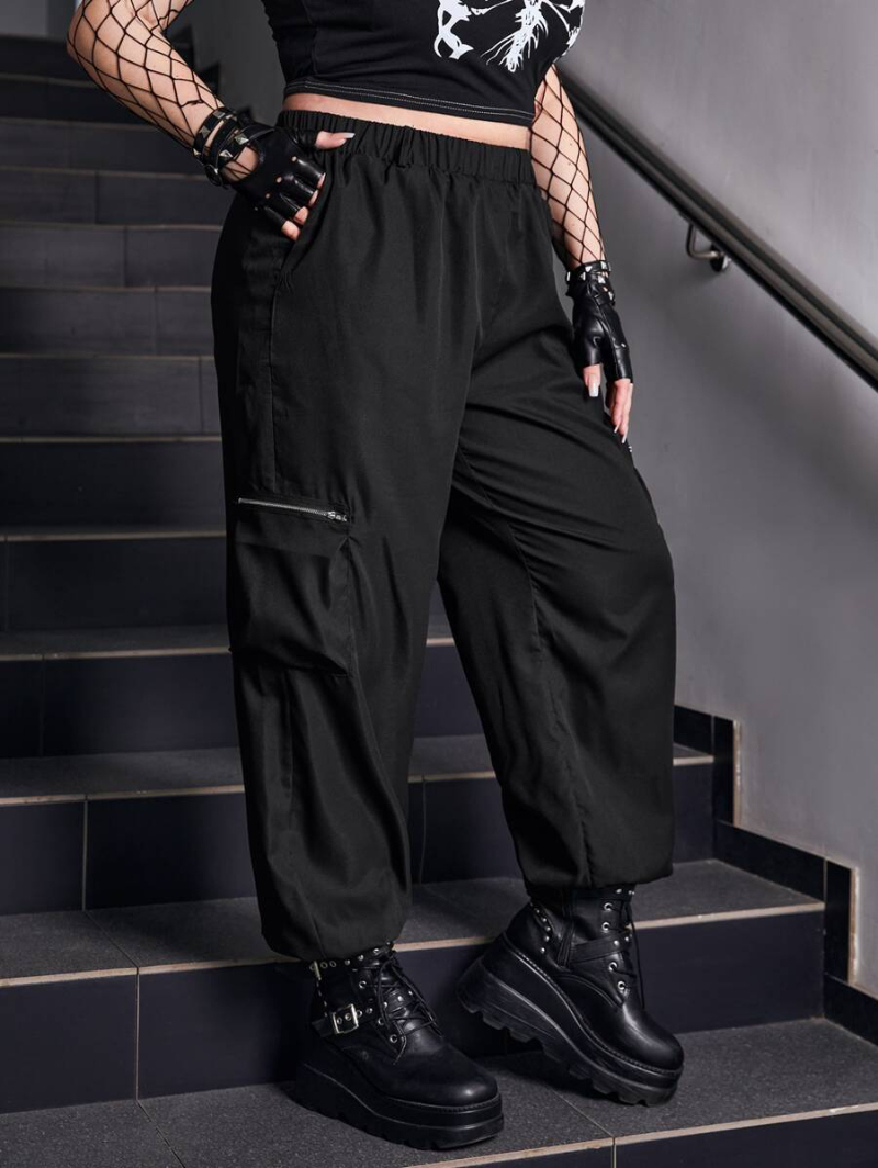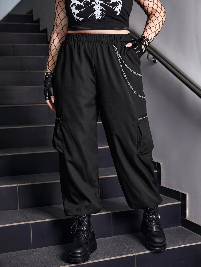 Grunge Punk Plus Chain Detail Zip Pocket Side Cargo Pants