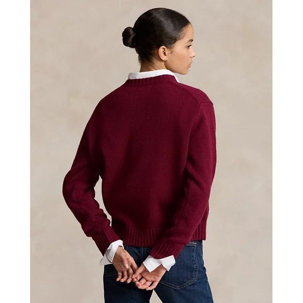 Knit with carded wool in a rich hue, this chunky crewneck jumper combines the season's signature academic-inspired crest with a bold "Polo" logo intarsia-knit and embroidered at the front.