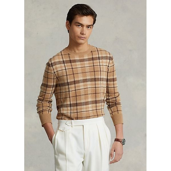 This lightweight sweater is intarsia-knit from soft cashmere and features a vintage plaid pattern sourced from the Ralph Lauren archive.