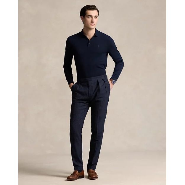This jumper combines a silhouette inspired by Ralph Lauren’s iconic Polo shirt with fine-gauge worsted wool and our signature embroidered Pony.