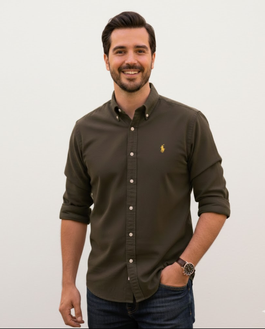 POLO Custom Fit Long Sleeve Shirt in Dark Olive