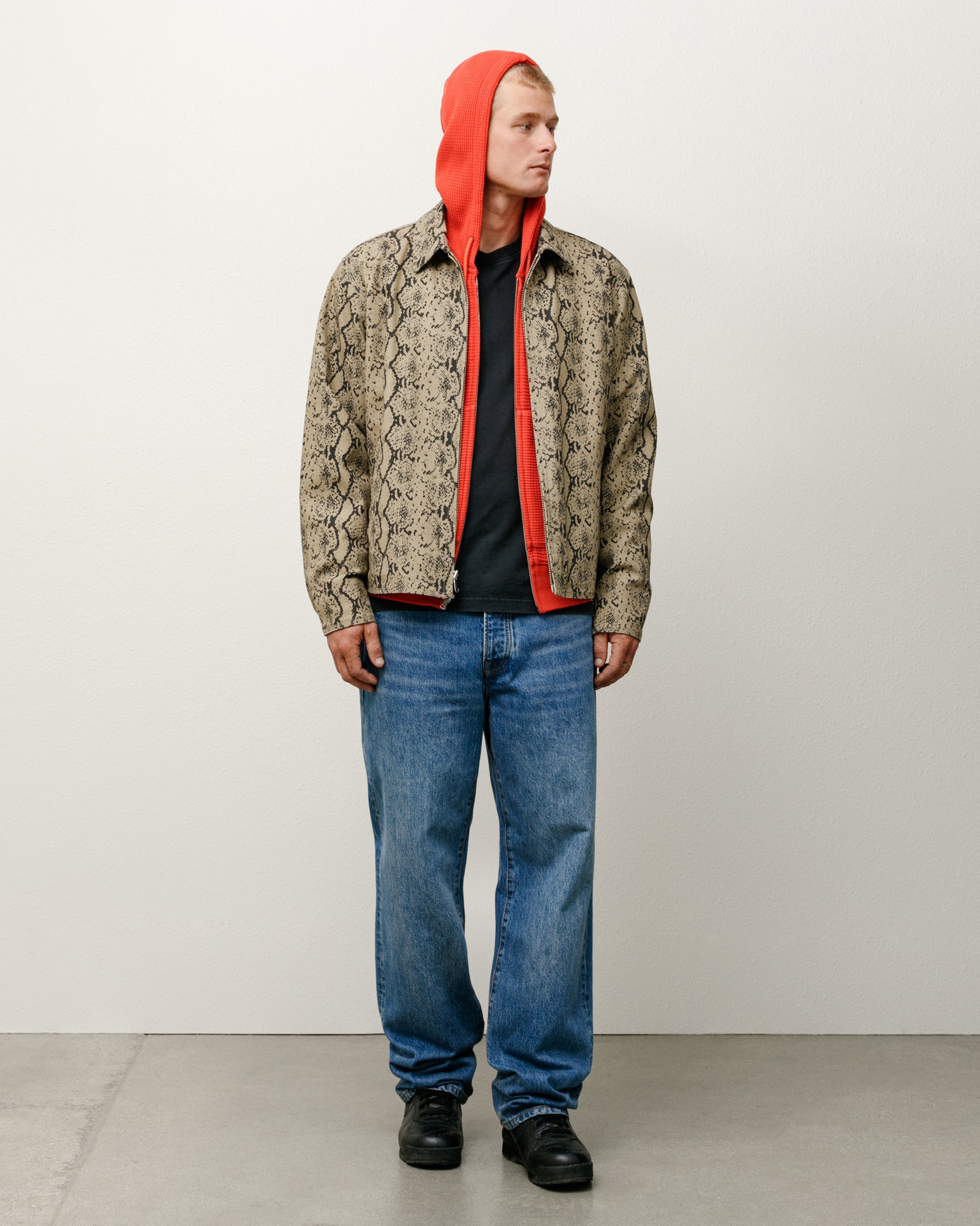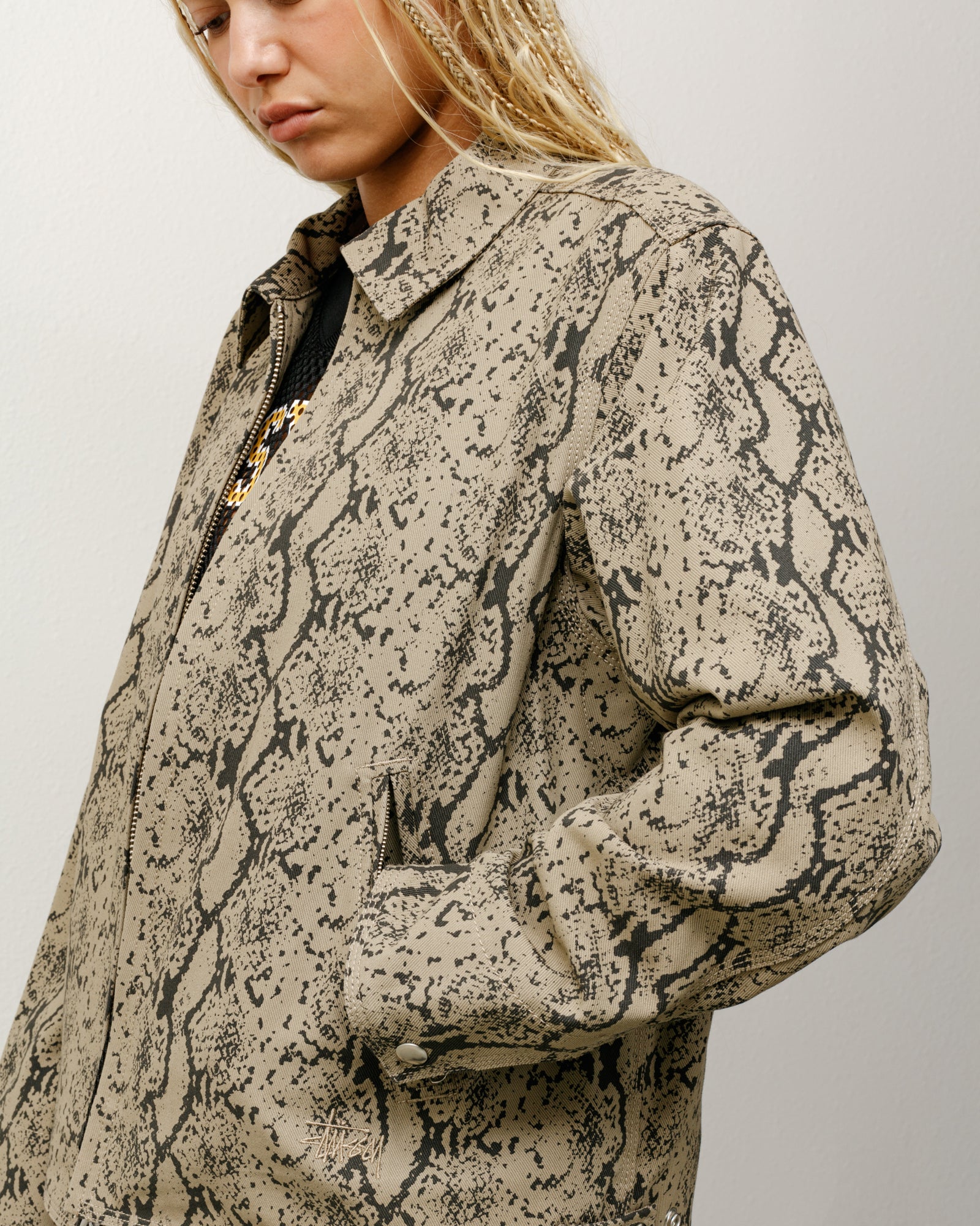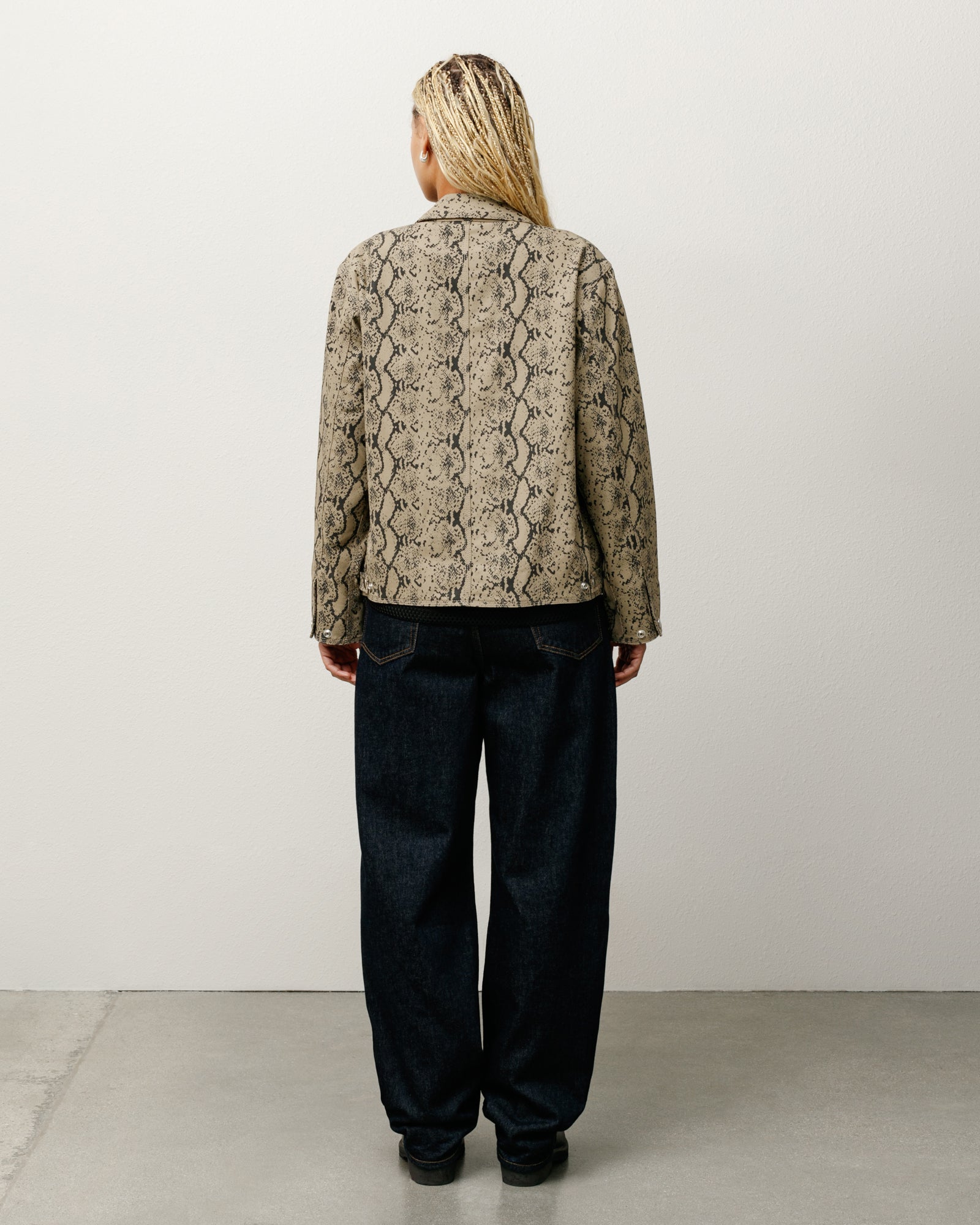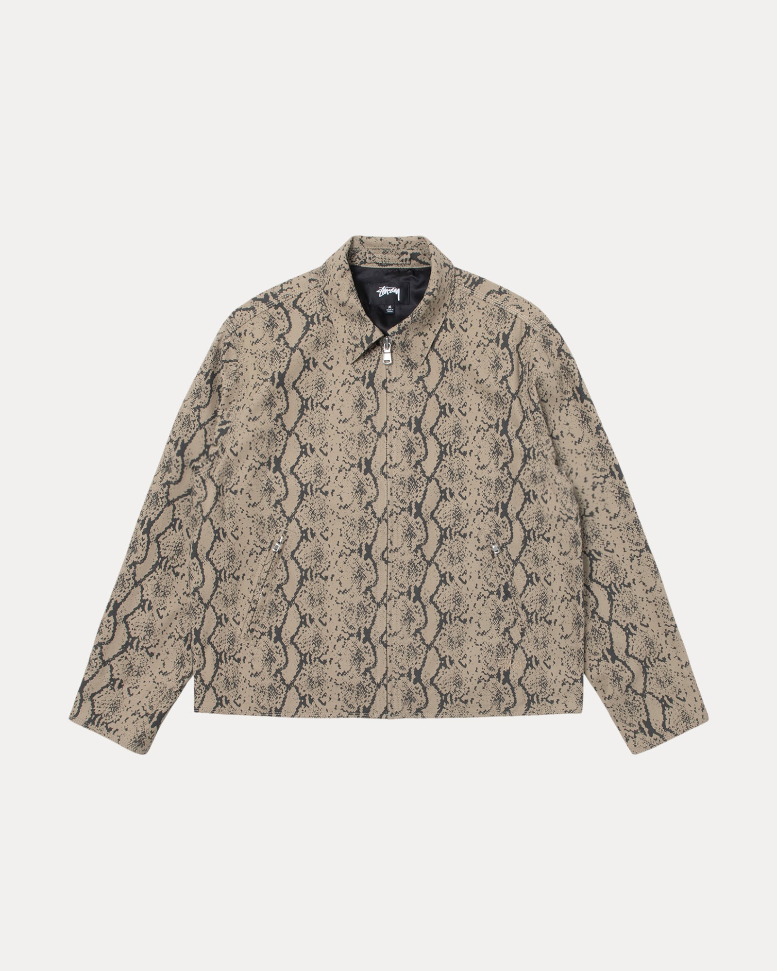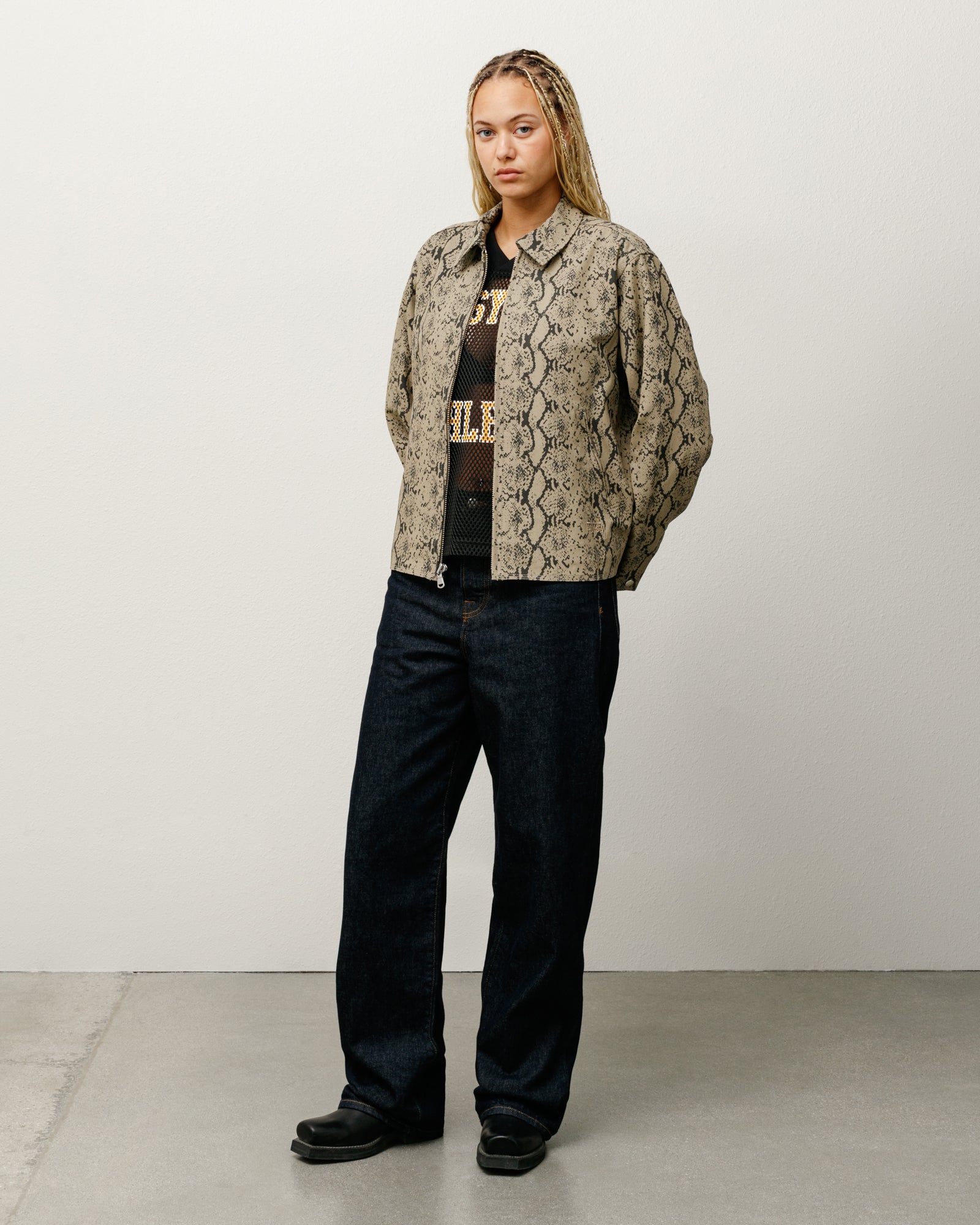 Boxy fit cotton gabardine jacket. Features a zip closure, triple needle topstitching and quilted lining with light fill. Stüssy basic logo embroidered at hem.