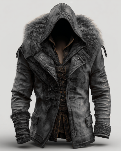 Autumn/Winter Fashion Thick Warm Fur Collar Leather Coat 8187