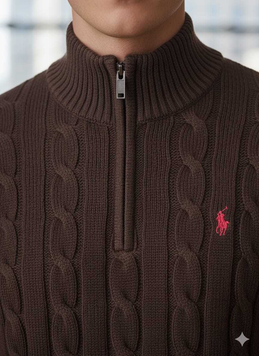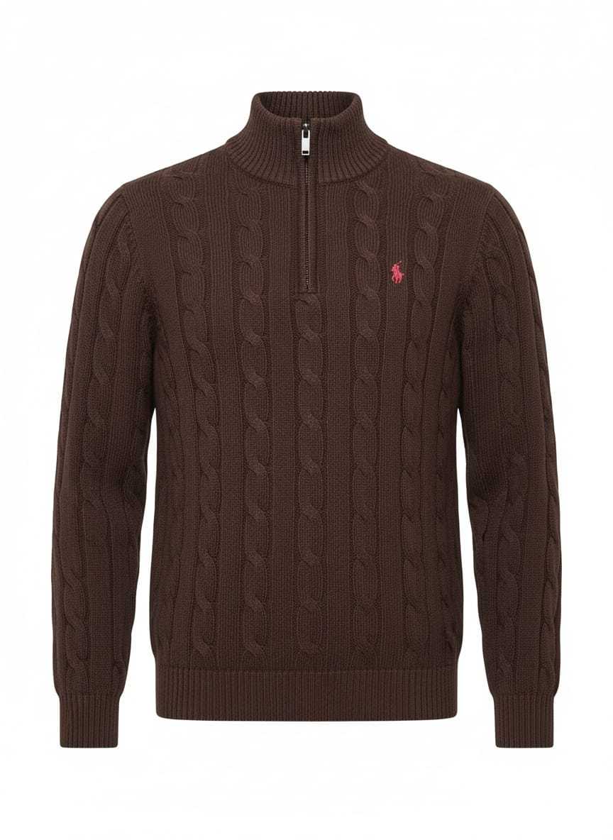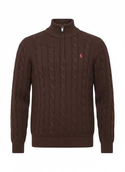 POLO Dusk Crimson Luxe Cable Knit Half-Zip Sweater