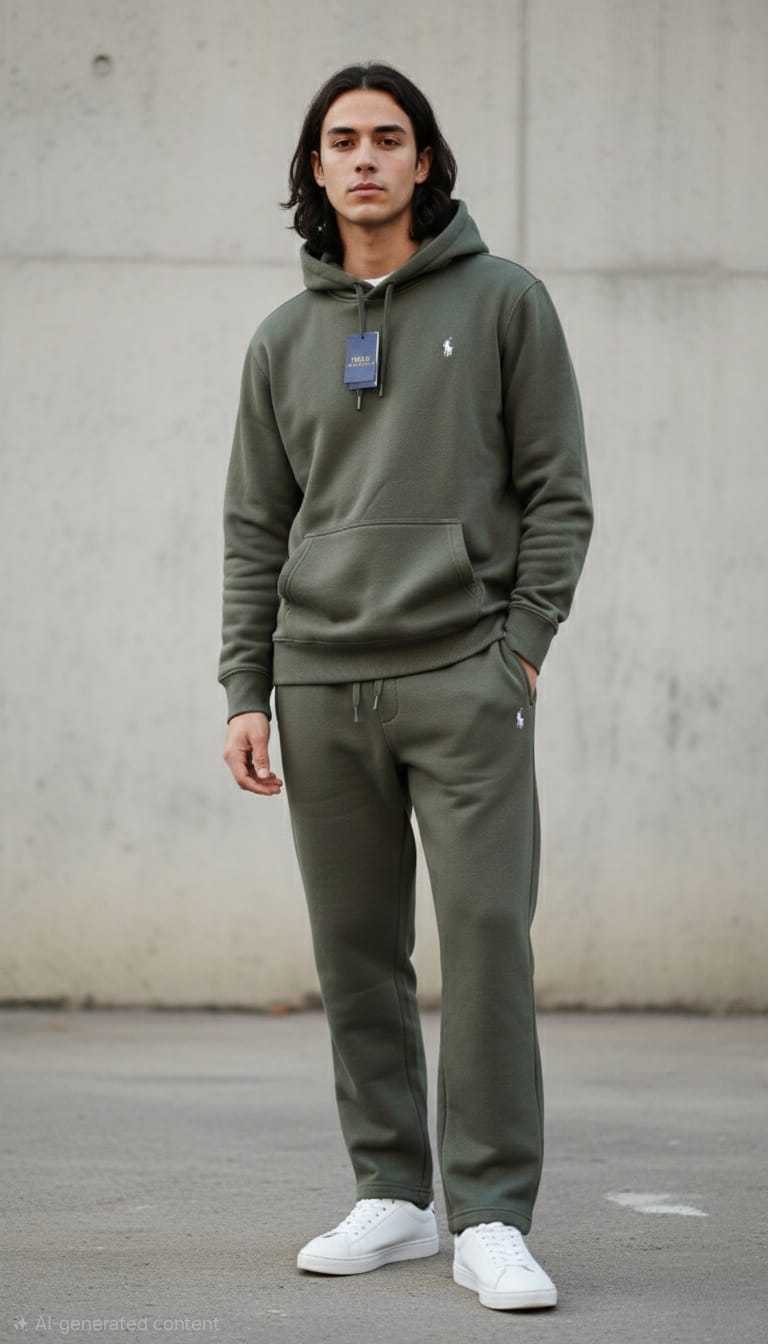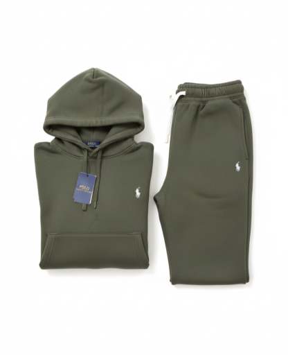 POLO Men's Classic Fit Hoodie and Jogger Set in Olive Green