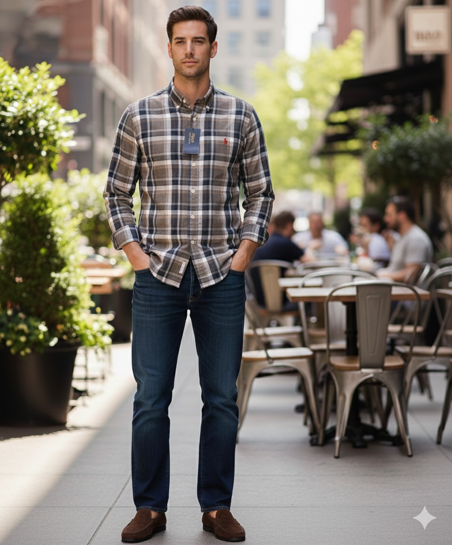 POLO Serene Blush Tailored Fit Long Sleeve Gingham Shirt