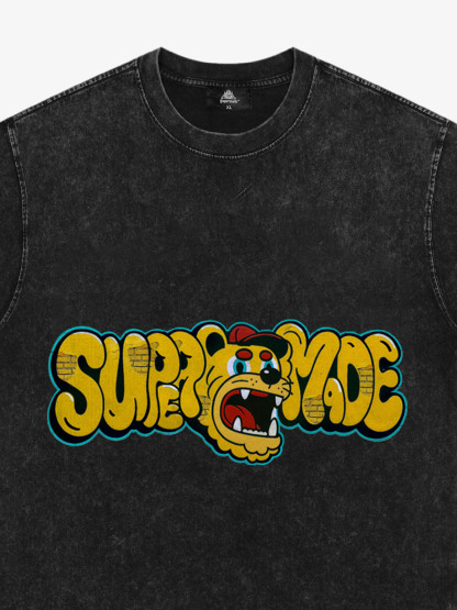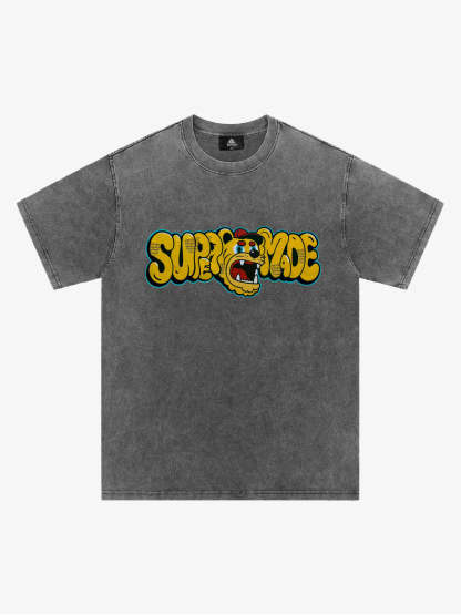 Street Graffiti Trendy Tiger Head Font T-Shirt