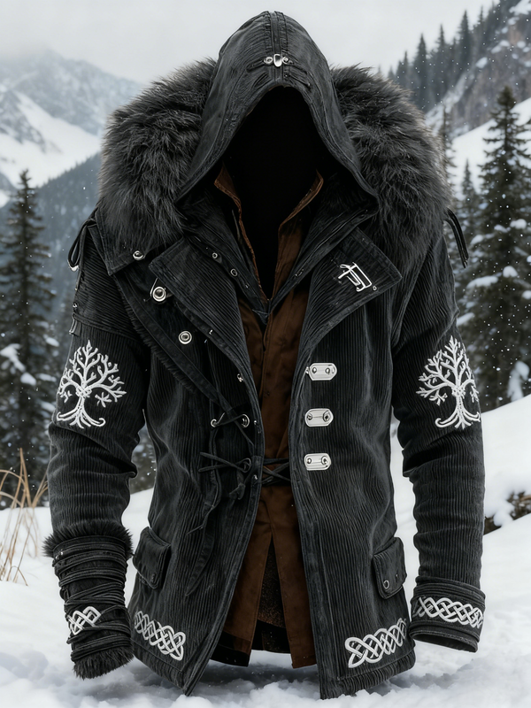 Winter Stylish Warm Viking Plush Hooded Jacket 2737