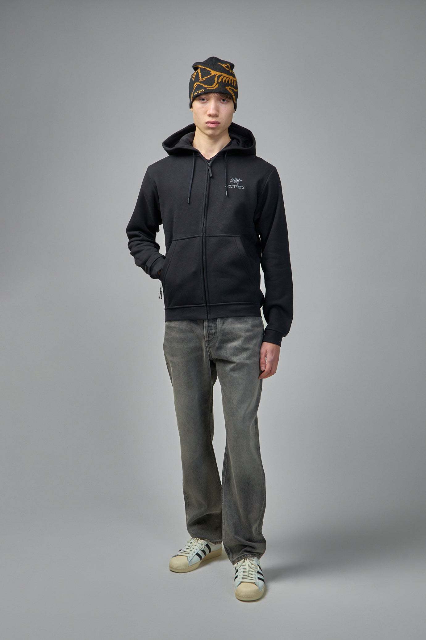 - Ribbed cuffs and hem