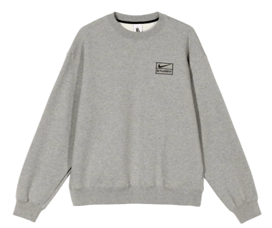 A Nike x Stüssy Crew Fleece Grey é uma peça essencial para qualquer entusiasta de streetwear.