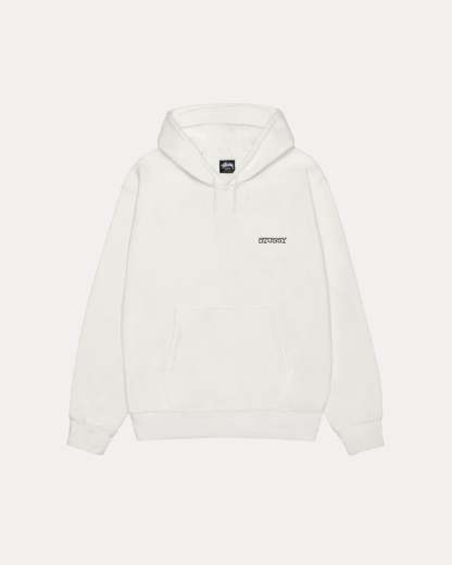 Oversized pigment dyed fleece hoodie in heavyweight 480gsm cotton. Screenprinted using water-based ink for a soft hand feel.