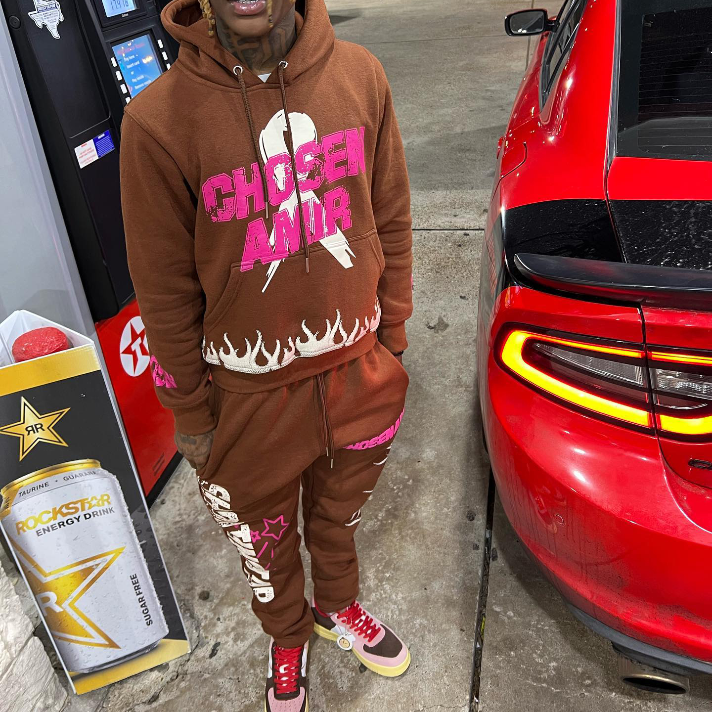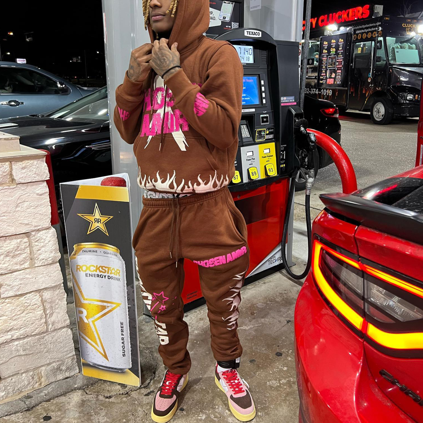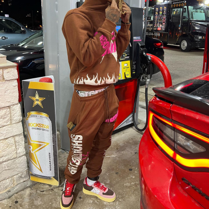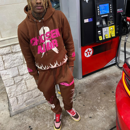 Casual personalized flame letter pattern hoodie set