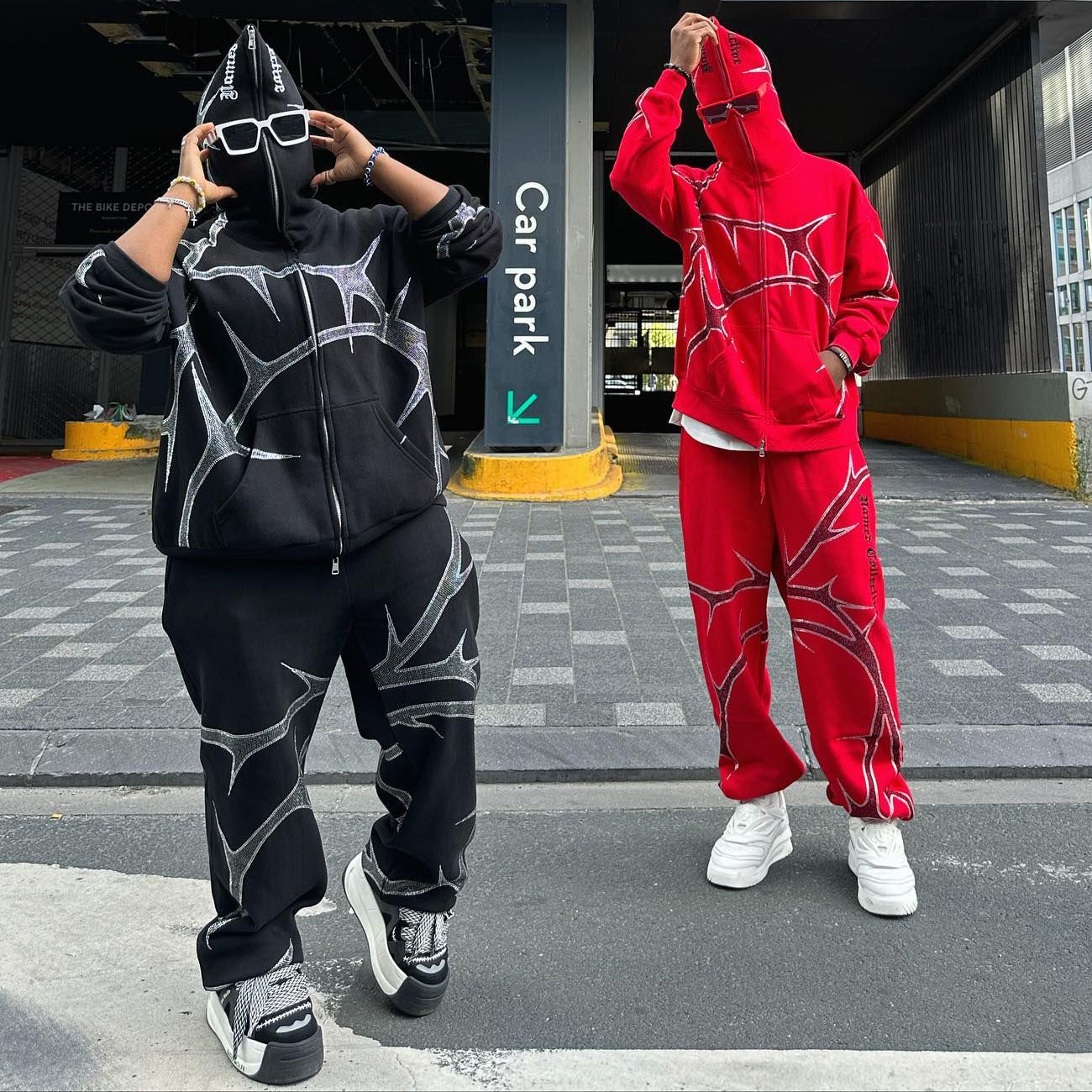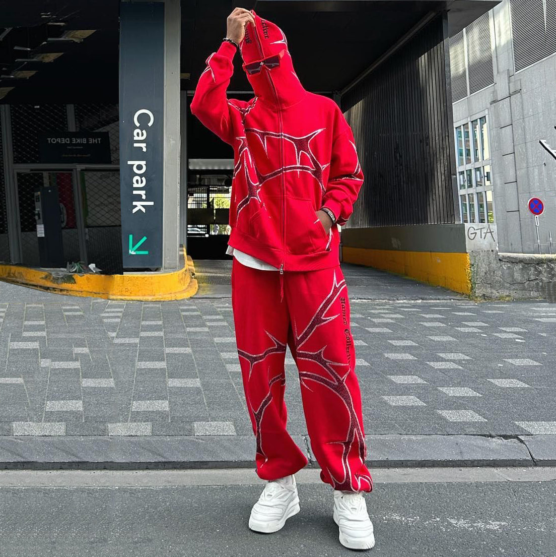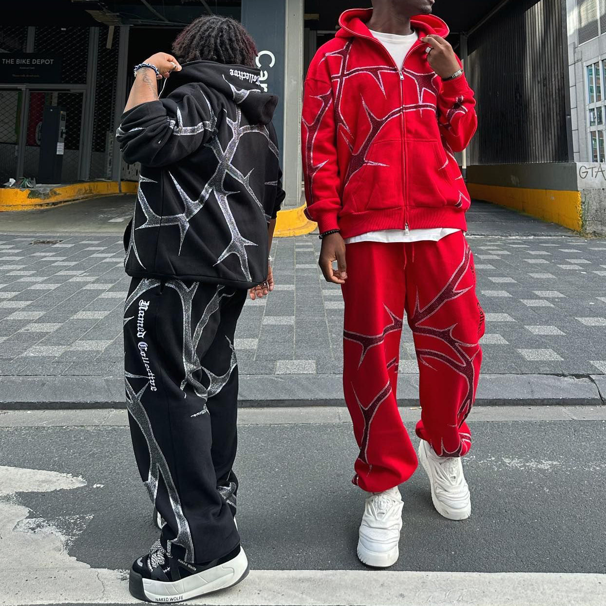 Chain Full Zip Hoodie Sweatpants Print Two Piece Set
