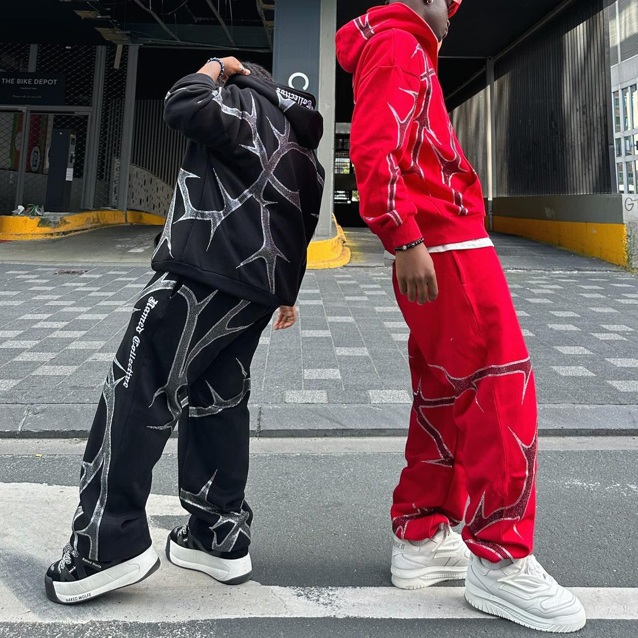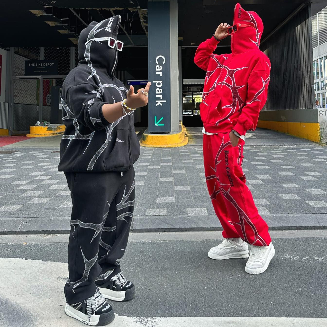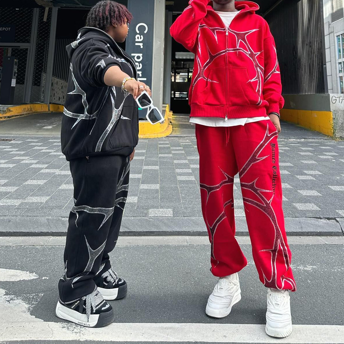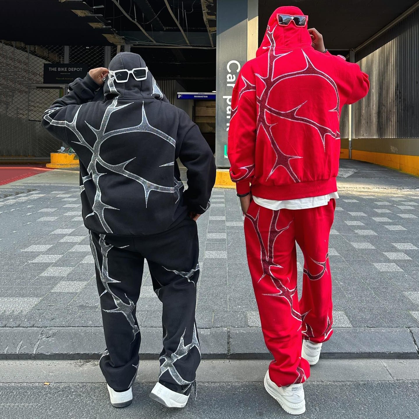 Chain Full Zip Hoodie Sweatpants Print Two Piece Set