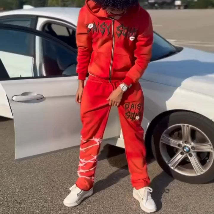 Daisy Soho Zipper Hoodie Sweatpants Print Two Piece Set