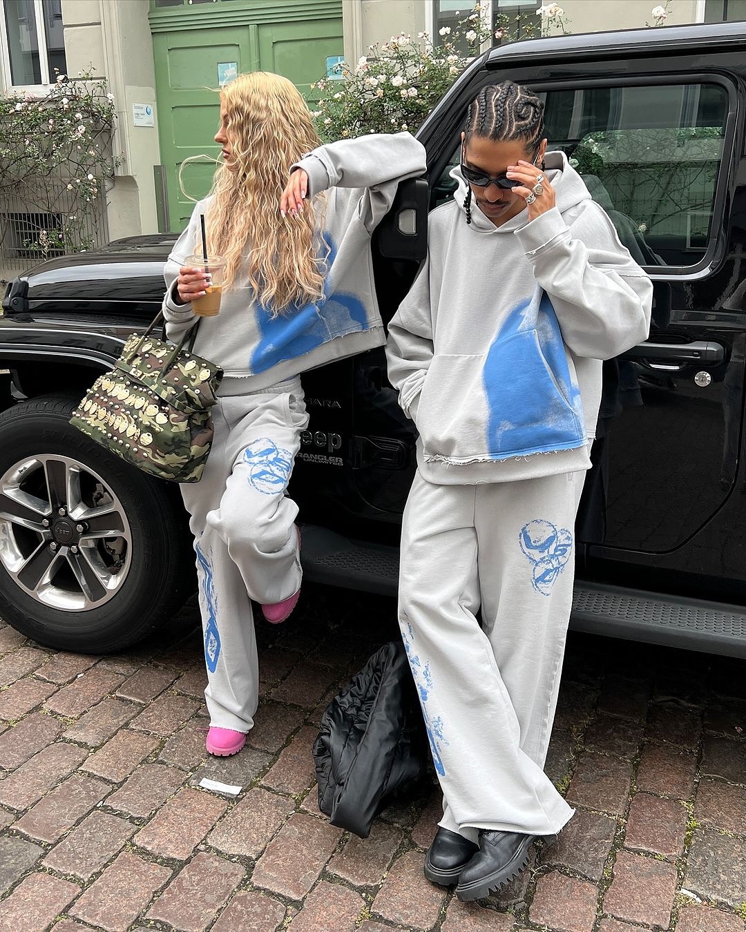 Fashionable street style face sweatsuit