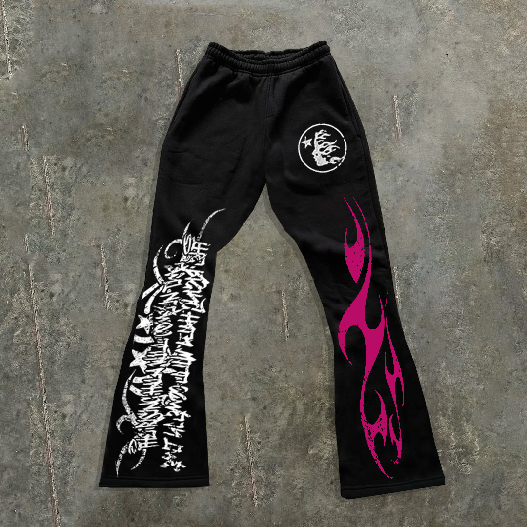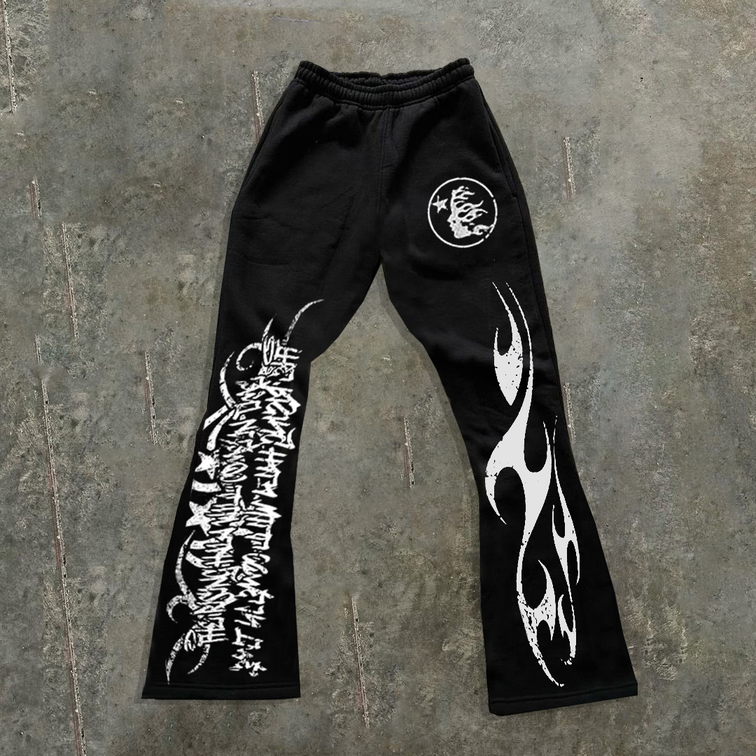 Hellstar Flame Abstract Star Graphic Flared Trousers