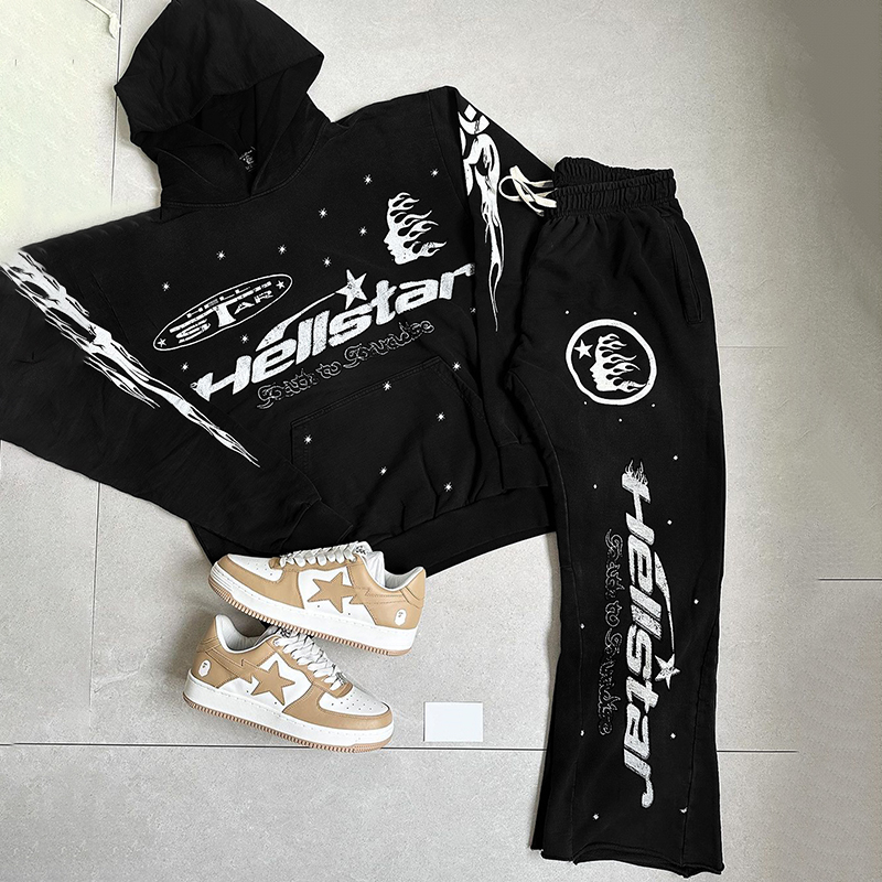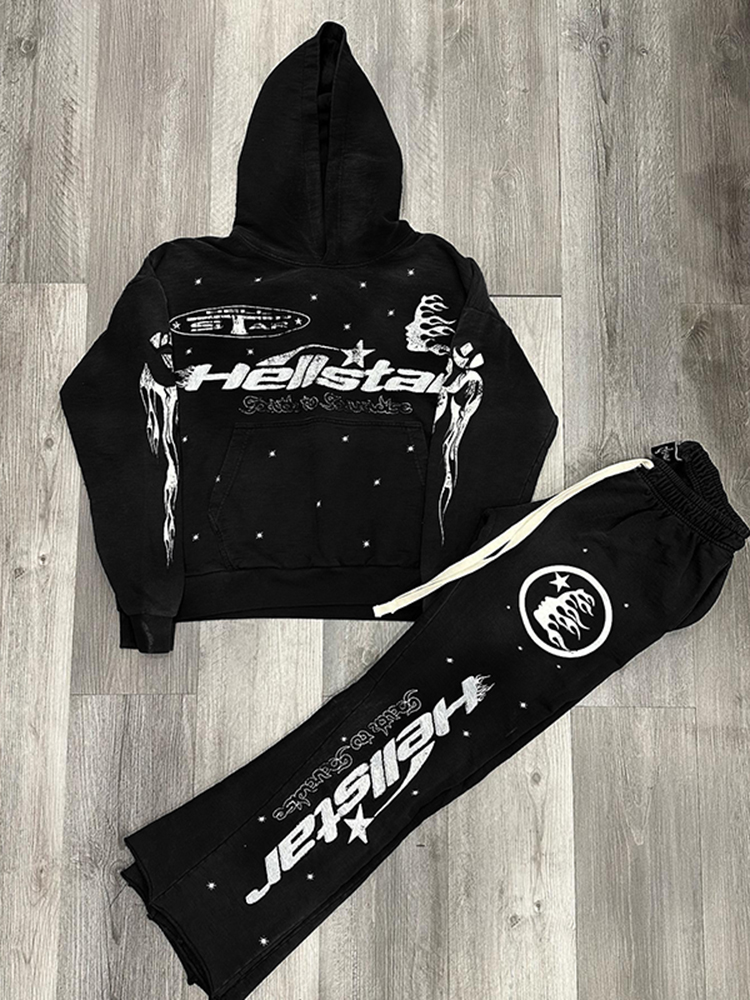 Hellstar Graphic Black Hoodie Tracksuit & Flared Sweatpants