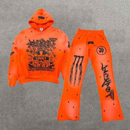 Lucky Latto Print Hoodie Sweatpants Two Piece Set