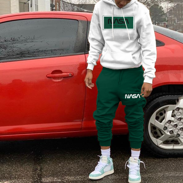 Nasa Print Hoodie Sweatpants Two Piece Set