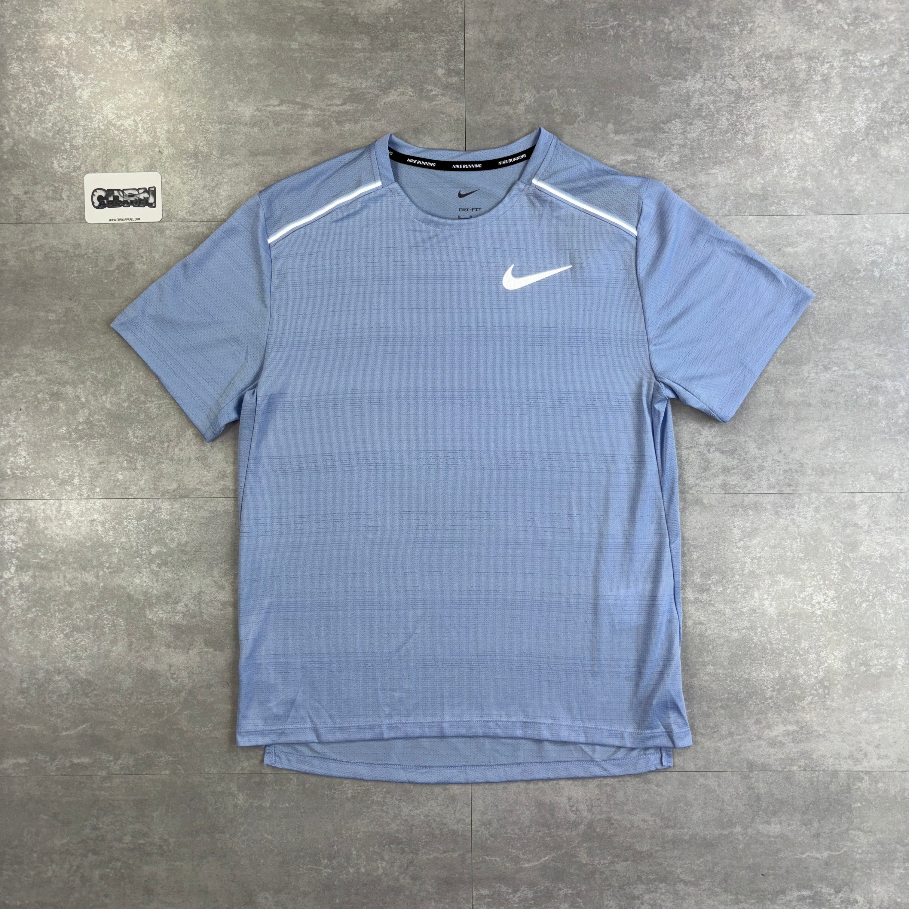 Step up your wardrobe in this men's Miler Short Sleeve T-Shirt from Nike. In a Cobalt Bliss colourway, this standard-fit tee is made from breathable poly fabric with Dri-FIT tech to keep away sweat and keep you cool. It features a crew neckline, short sleeves and reflective details to keep you seen after dark. With a dropped hem for extra coverage. Paired flawlessly with the Grey Nike Flex Stride Shorts, this set is the epitome of rare and hard-to-find activewear. This running tee is finished with the signature Swoosh logo to the chest. Machine washable.