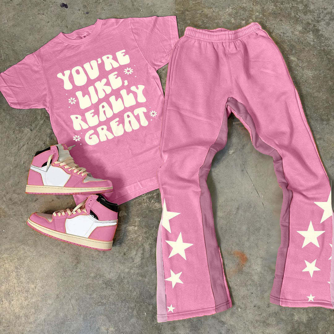 Pentagram & Letter Print T-Shirt Trousers Two-Piece Set