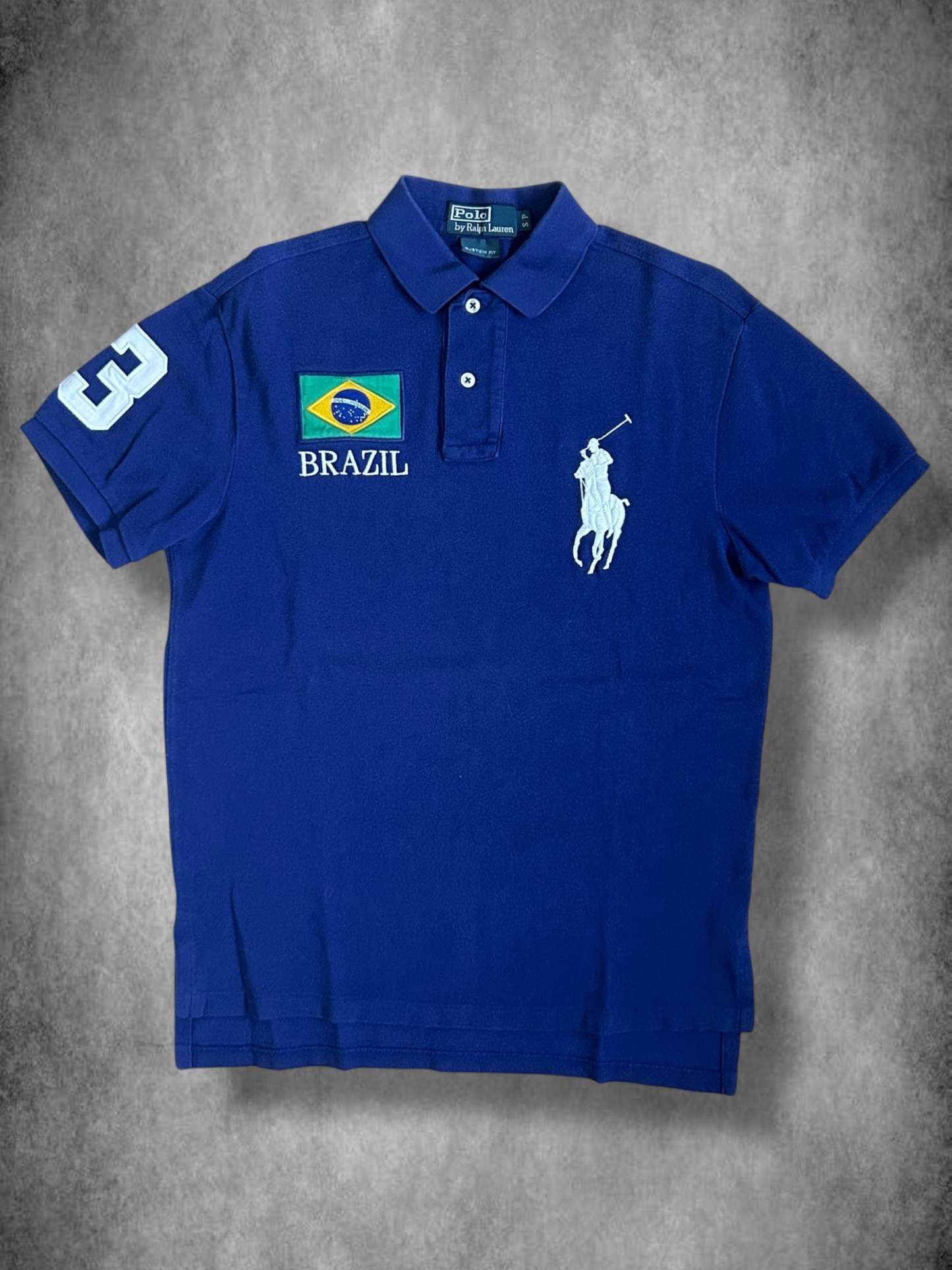 Made from 100% high-quality cotton, it features the Big Pony logo, bold "Brazil" lettering with the national flag, and the number 3 on the sleeve—a signature detail in Ralph Lauren’s polo designs. No longer in production, making it a rare and collectible item for Ralph Lauren enthusiasts.