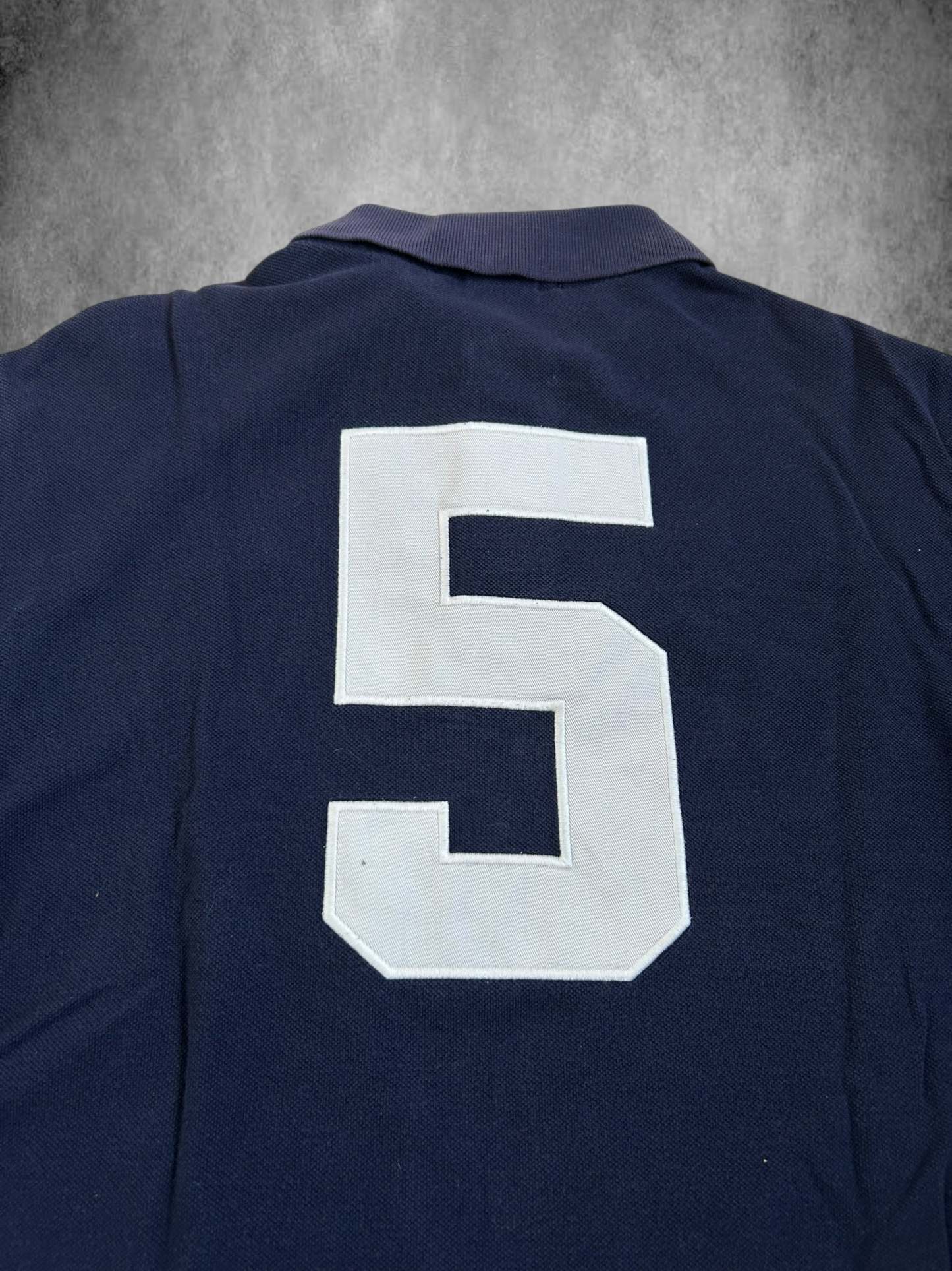 Made from 100% high-quality cotton, it features the Big Pony logo, bold "NEW YORK" lettering, an embroidered New York team crest, and the number 5 on both sleeves—a signature detail in Ralph Lauren’s polo designs. No longer in production, making it a rare and collectible item for Ralph Lauren enthusiasts.