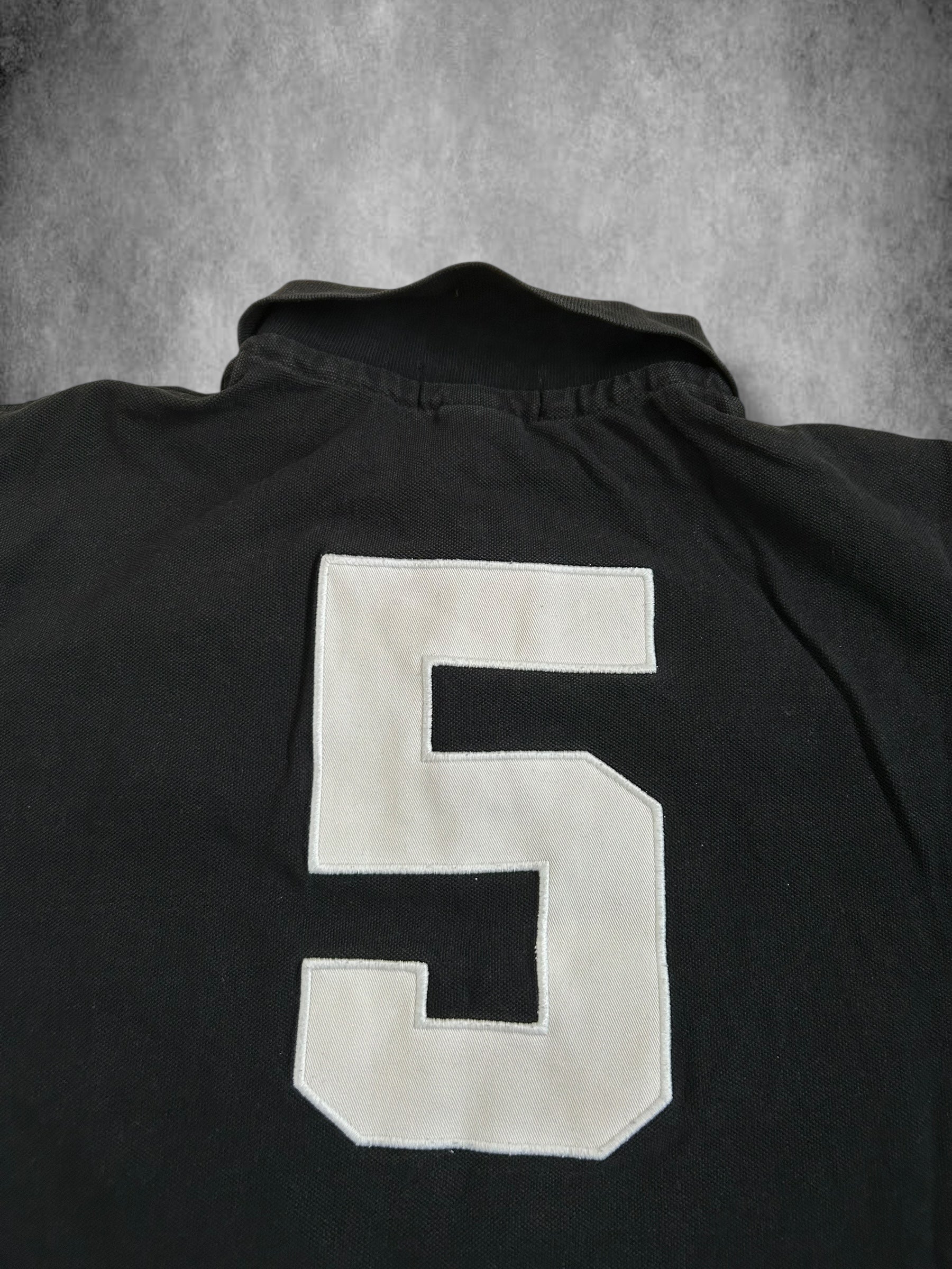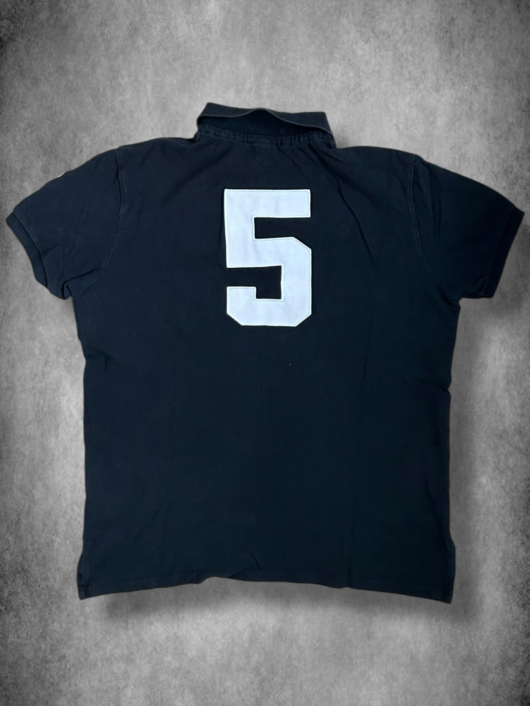 Made from 100% high-quality cotton, it features the Big Pony logo, bold "NEW YORK" lettering, an embroidered New York team crest, and the number 5 on both sleeves—a signature detail in Ralph Lauren’s polo designs. No longer in production, making it a rare and collectible item for Ralph Lauren enthusiasts.