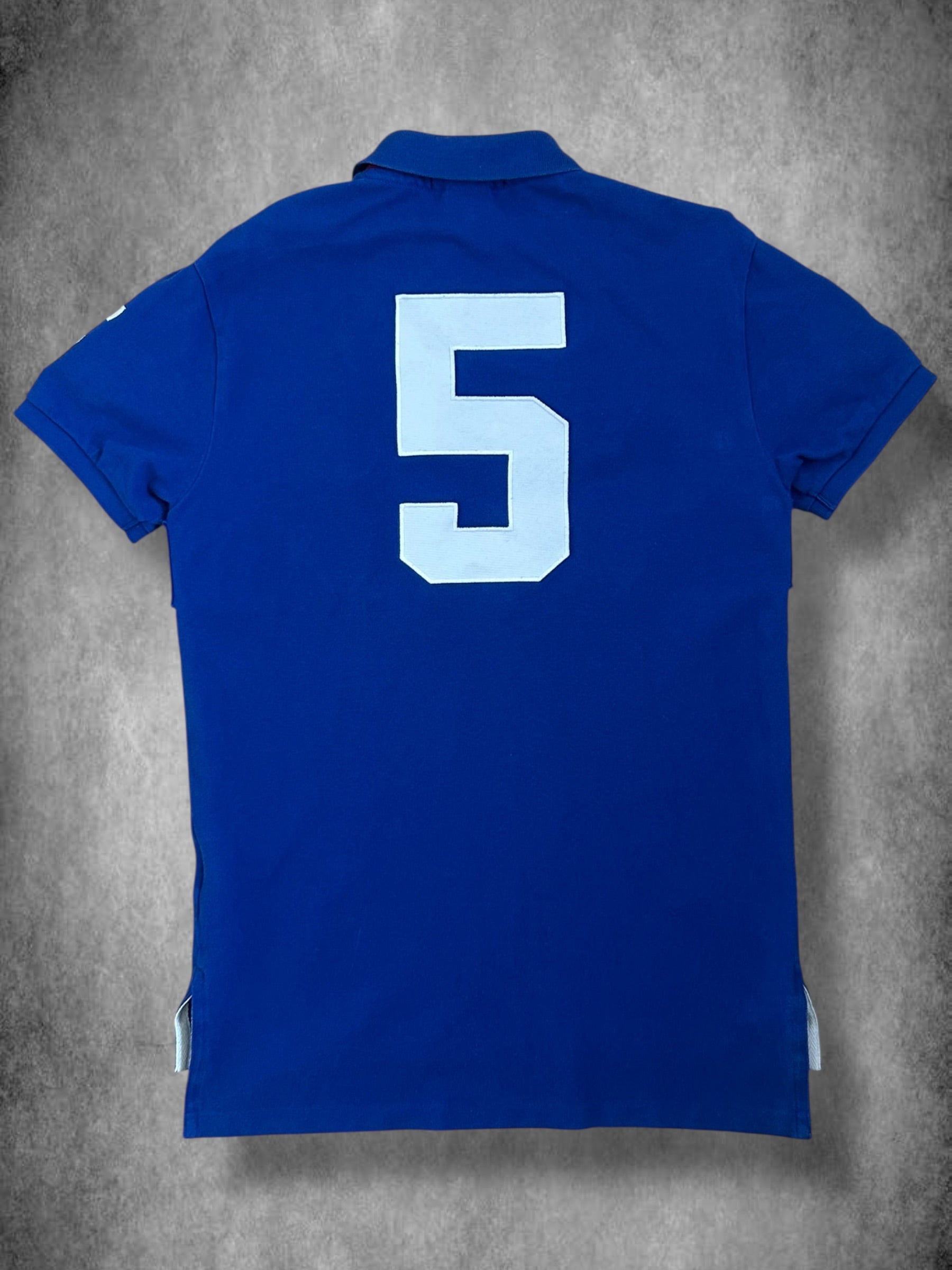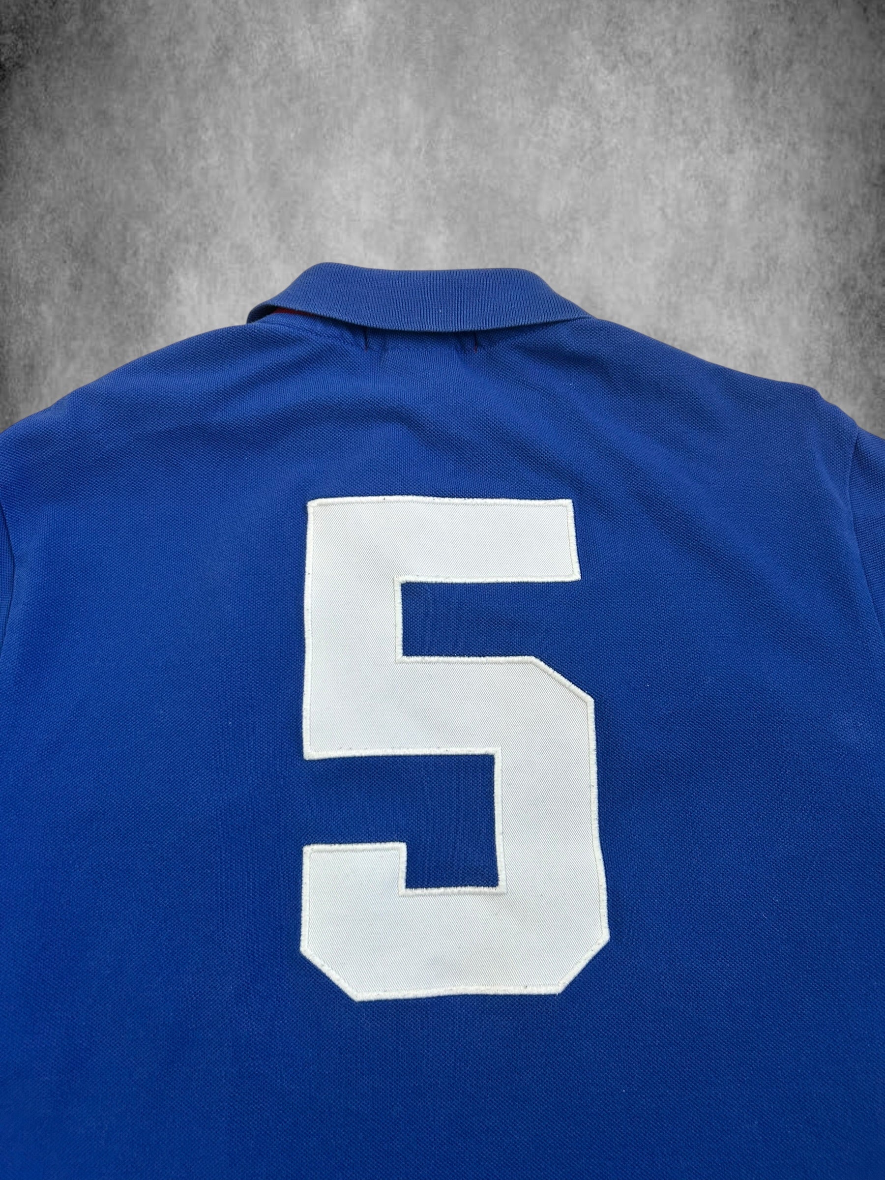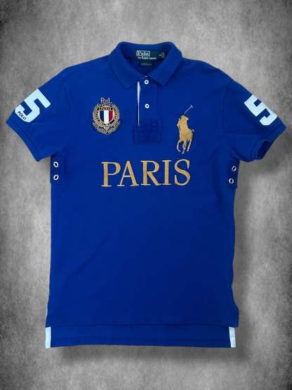 Made from 100% high-quality cotton, it features the Big Pony logo, bold "PARIS" lettering, an embroidered France crest, and the number 5 on both sleeves—a signature detail in Ralph Lauren’s polo designs. No longer in production, making it a rare and collectible item for Ralph Lauren enthusiasts.