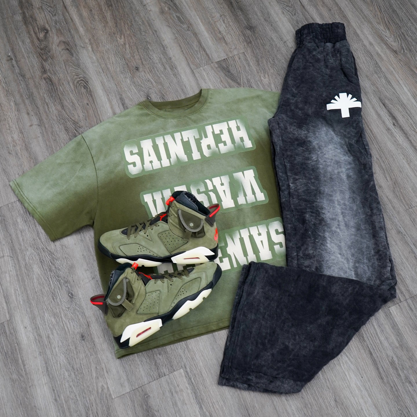 Saint T-shirt casual street trousers two-piece set