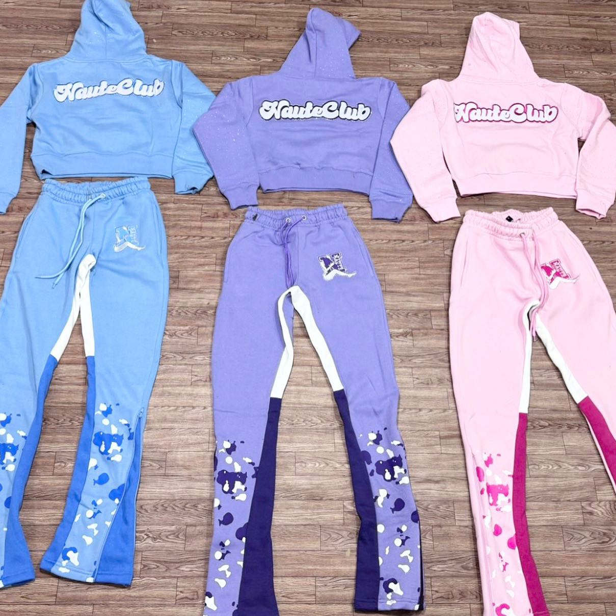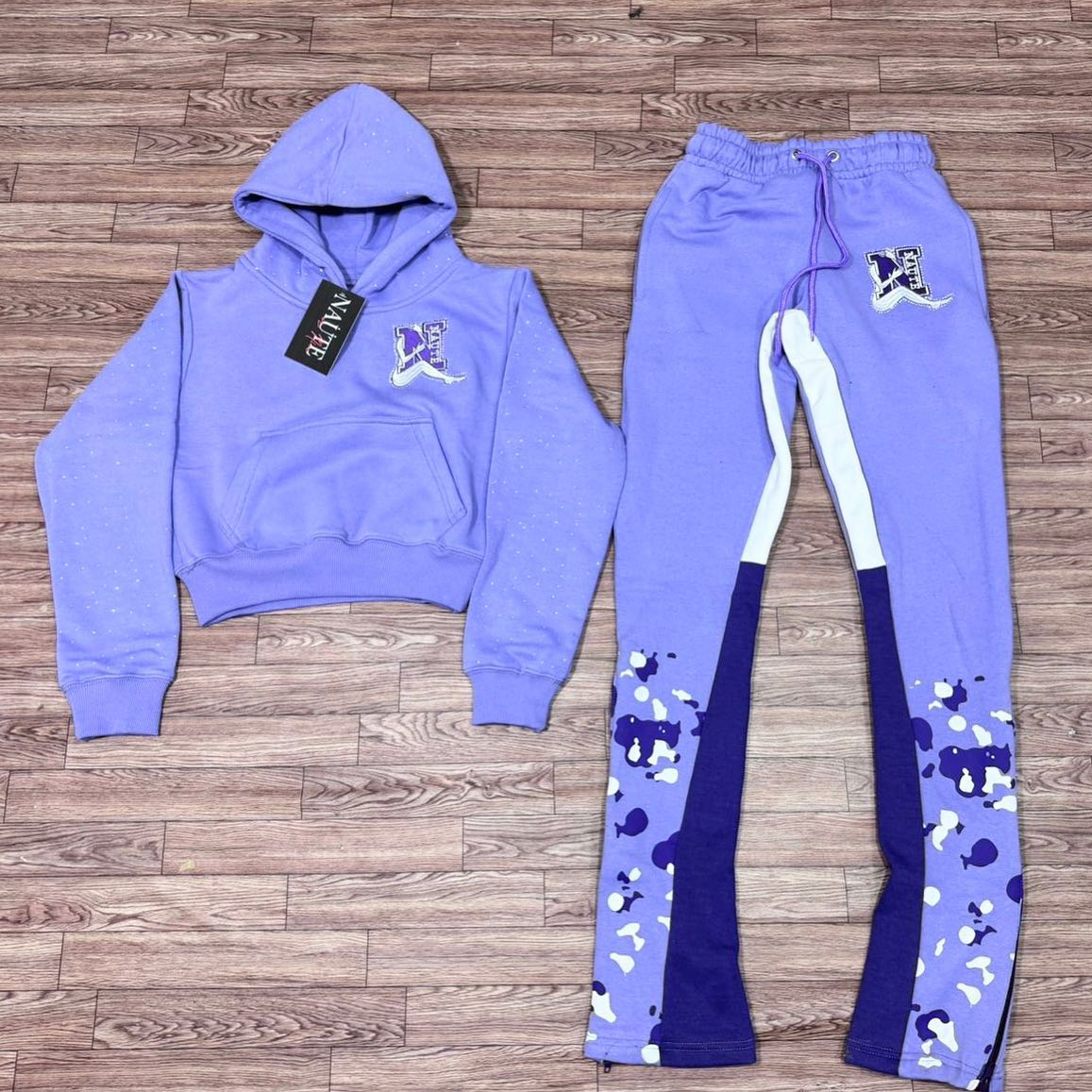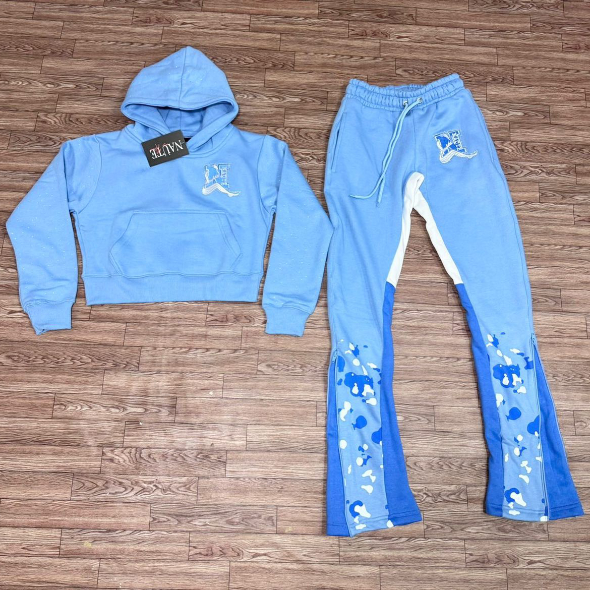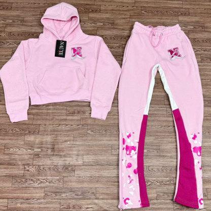 Stylish casual contrast print hoodie set