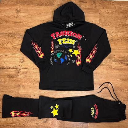 Stylish Multi-Pocket Printed Hoodie Tracksuit