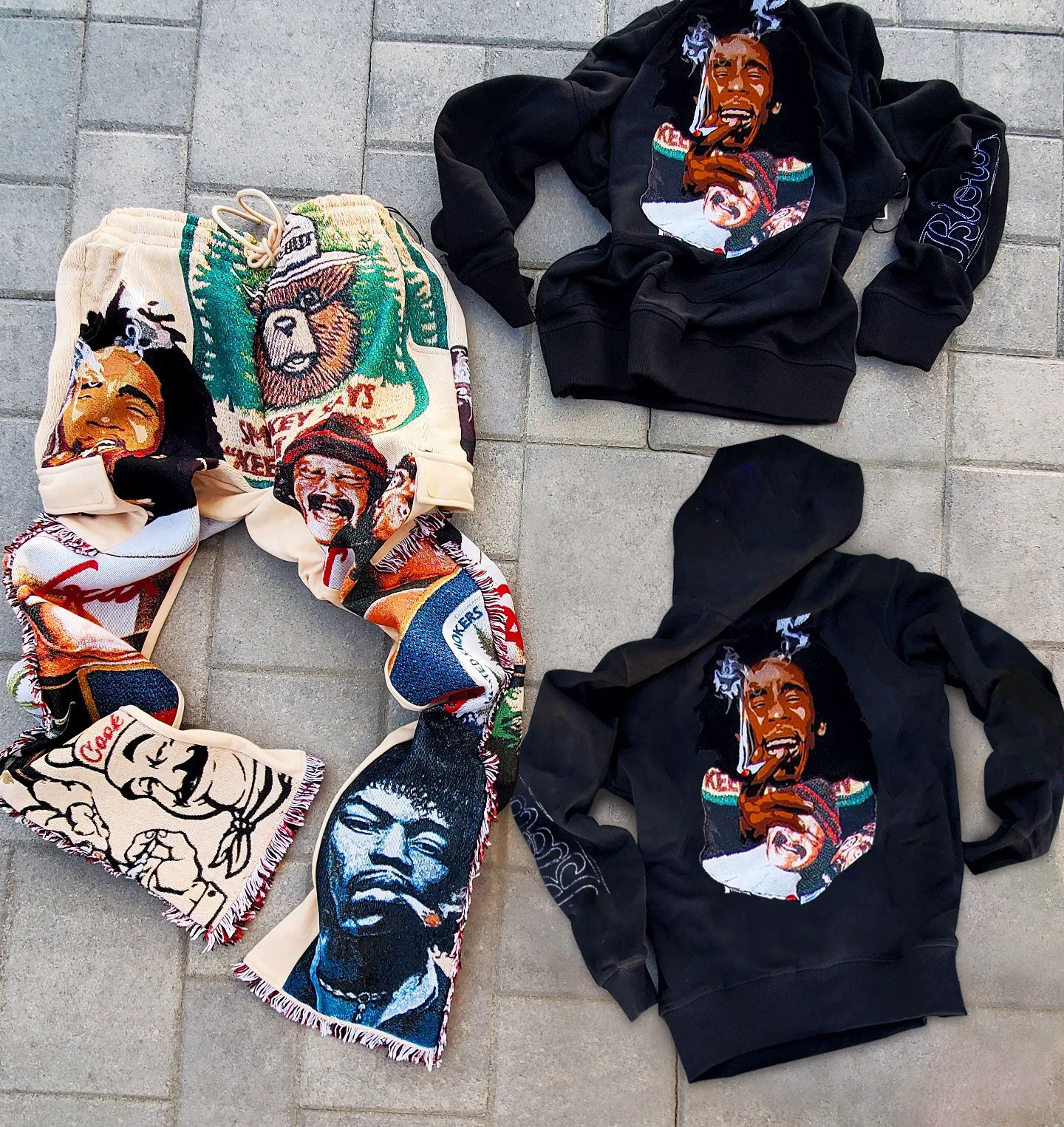 Stylish retro print character pattern hoodie set