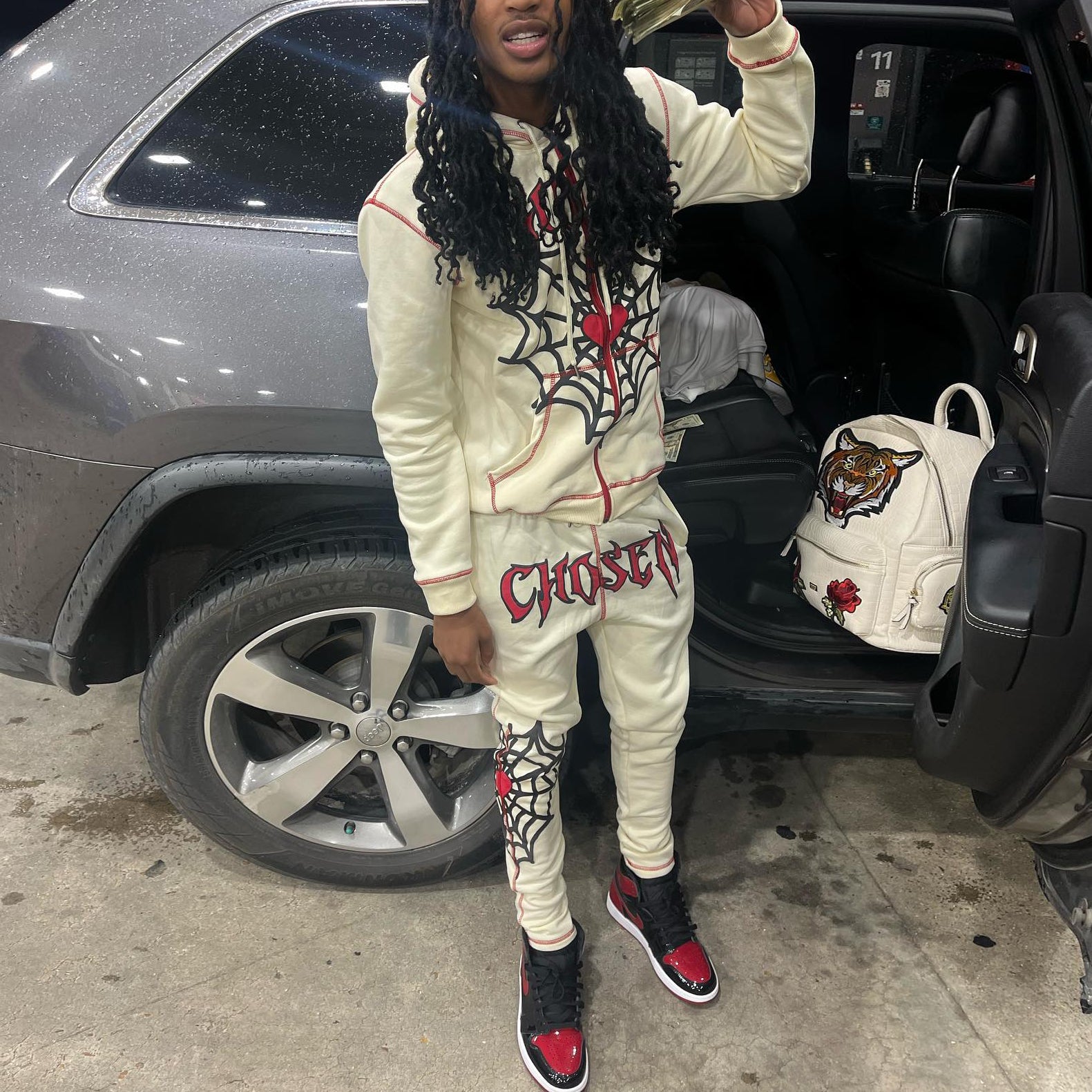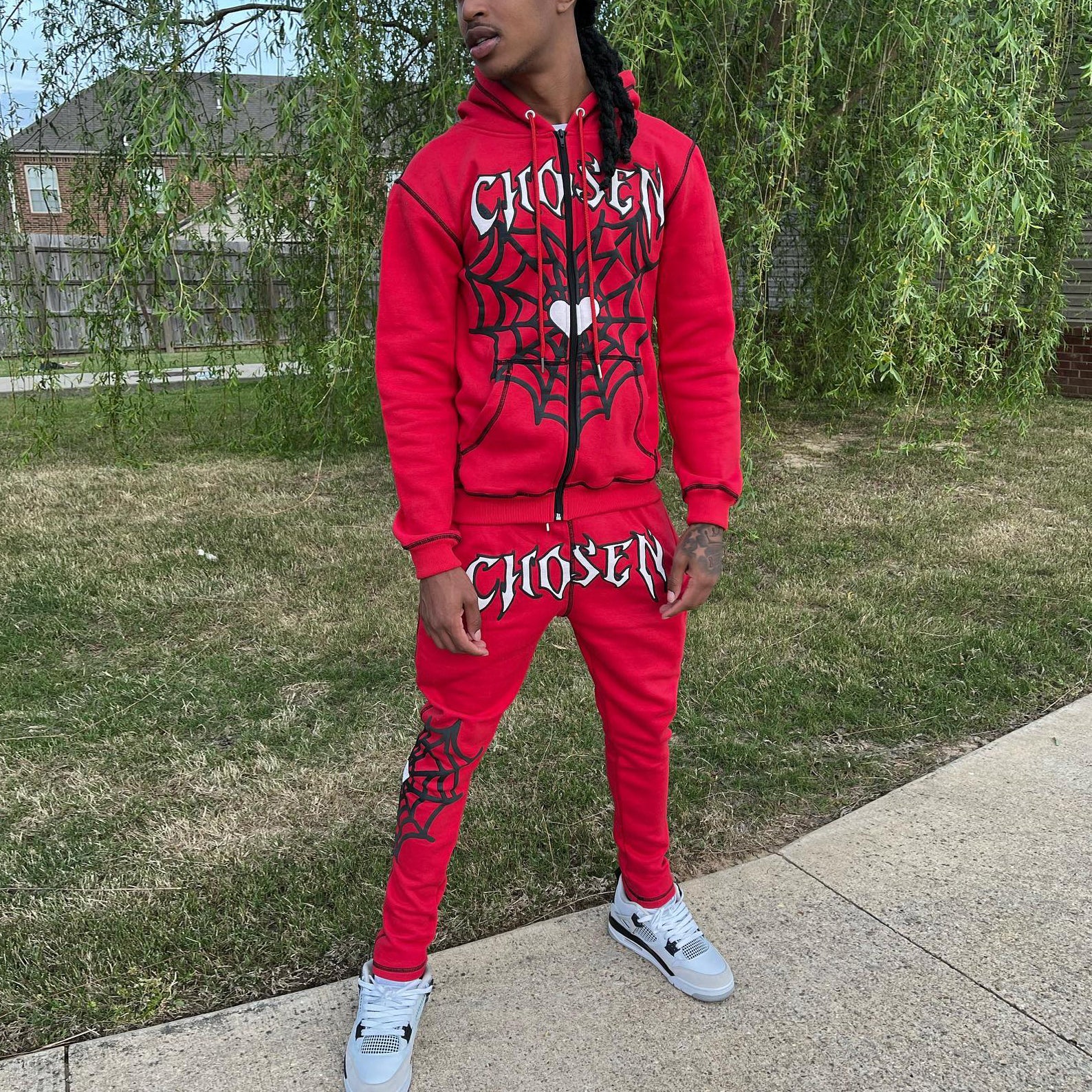 Stylish spider print casual sports suit