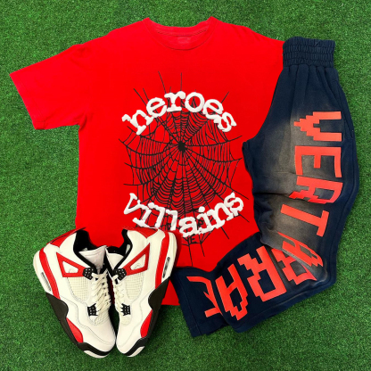 Vertabrae Spider Web Print T-shirt Sweatpants Two Piece Set