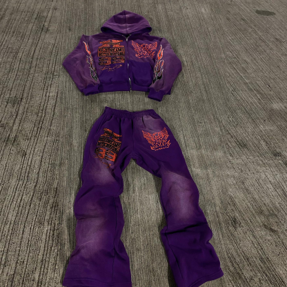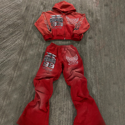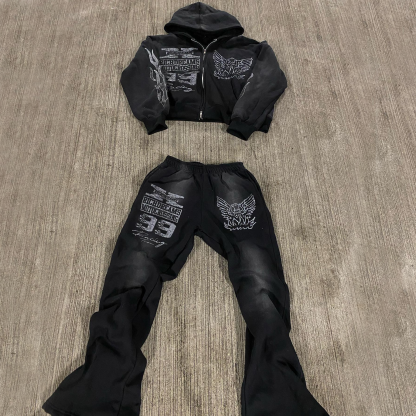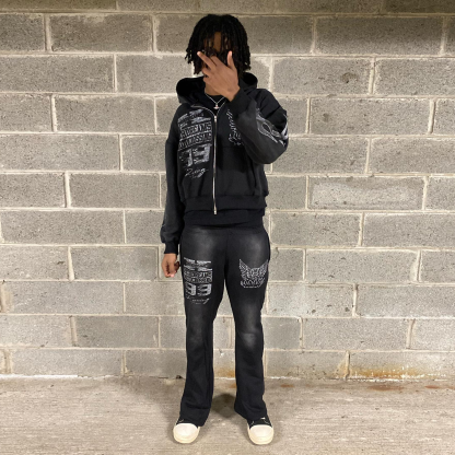 Vintage distressed zipper sweatshirt suit
