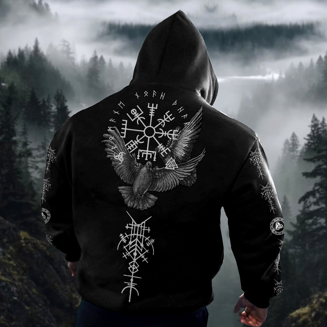 Men's Tribal Bird Viking Ethnic Graphics Hoodie