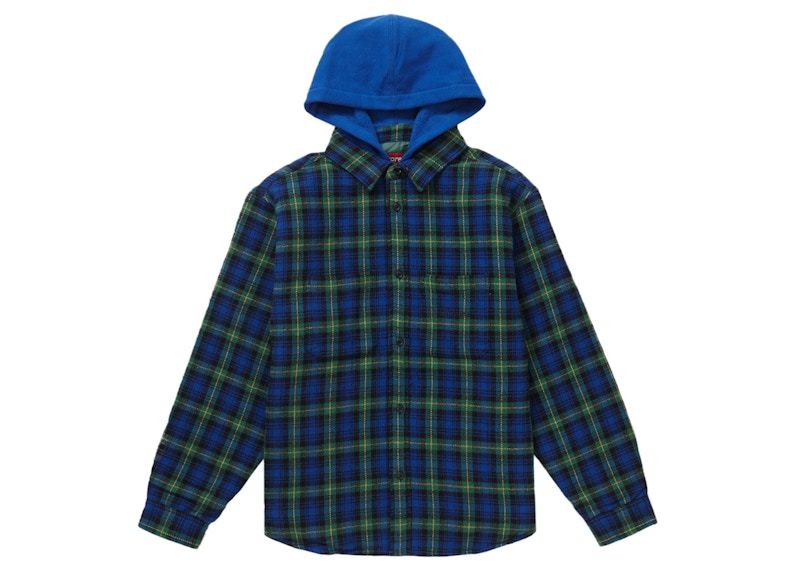 Supreme Tartan Flannel Hooded Shirt Blue