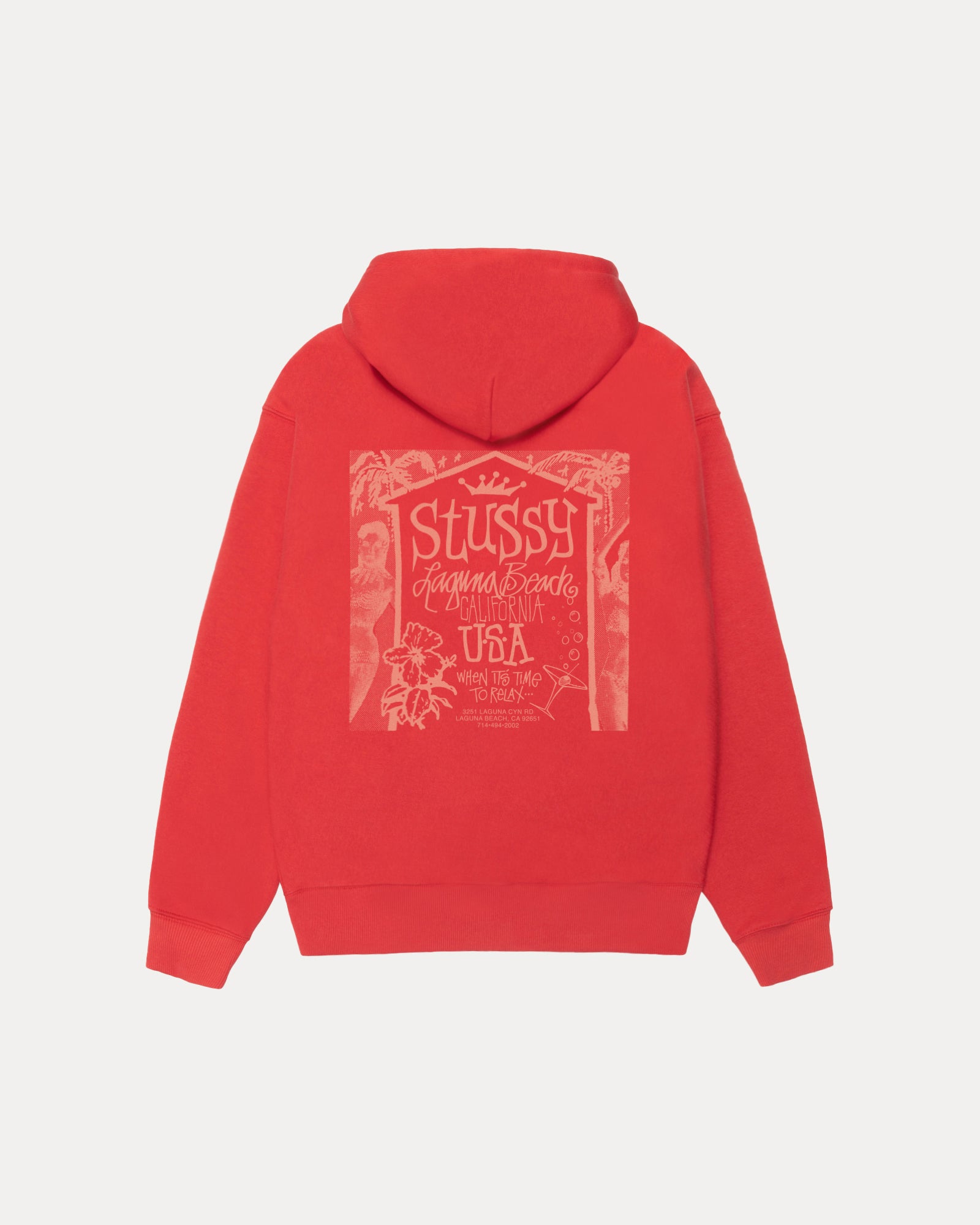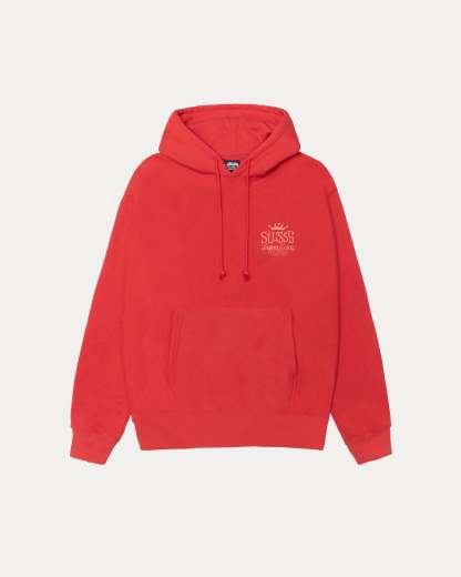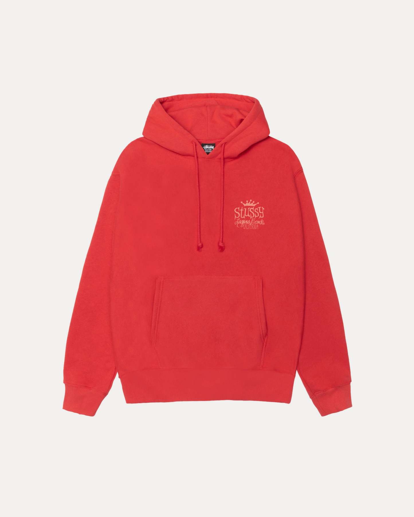 Relaxed fit fleece hoodie in a heavyweight 430gsm cotton blend. Screenprinted graphics at left chest and across back.