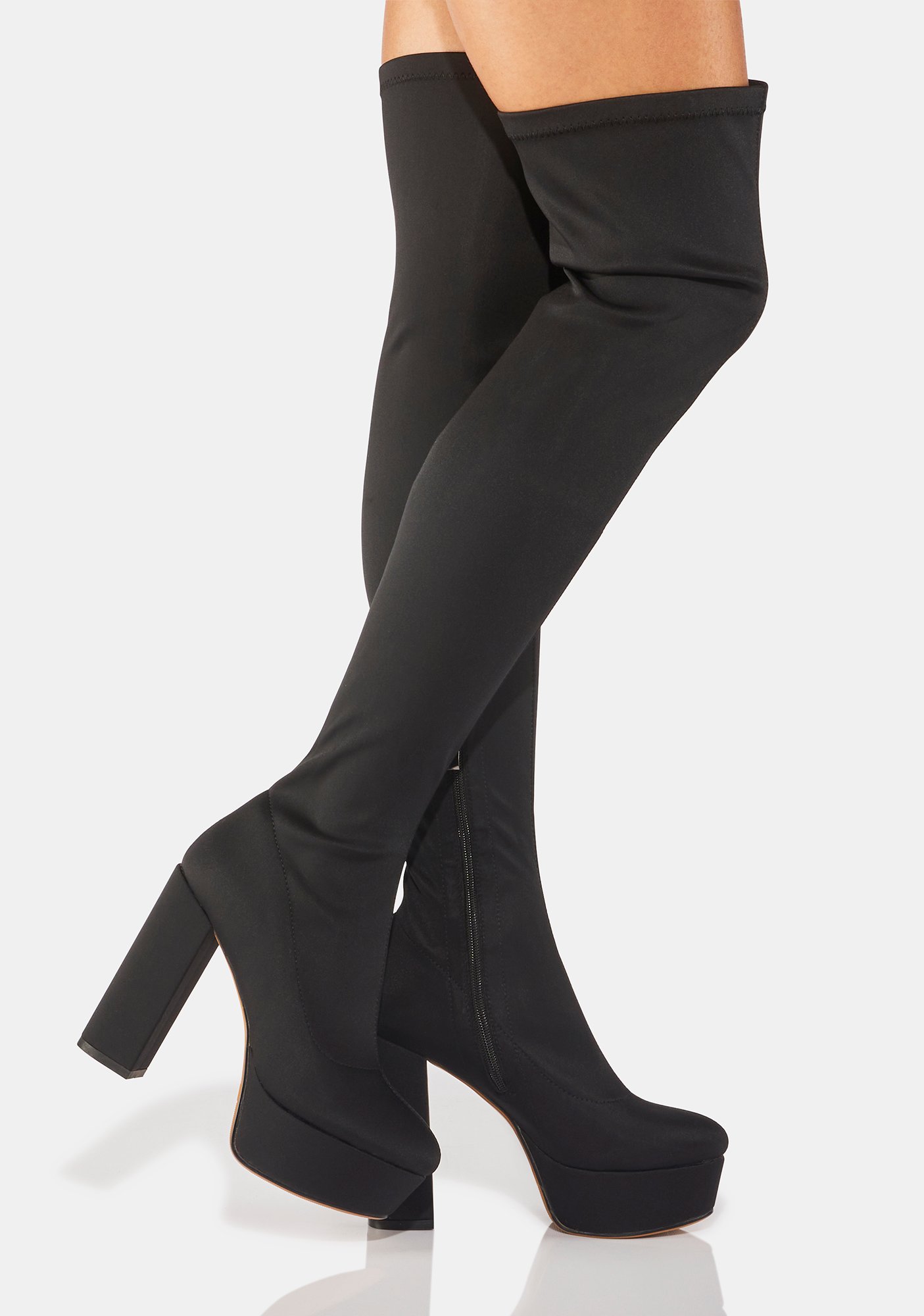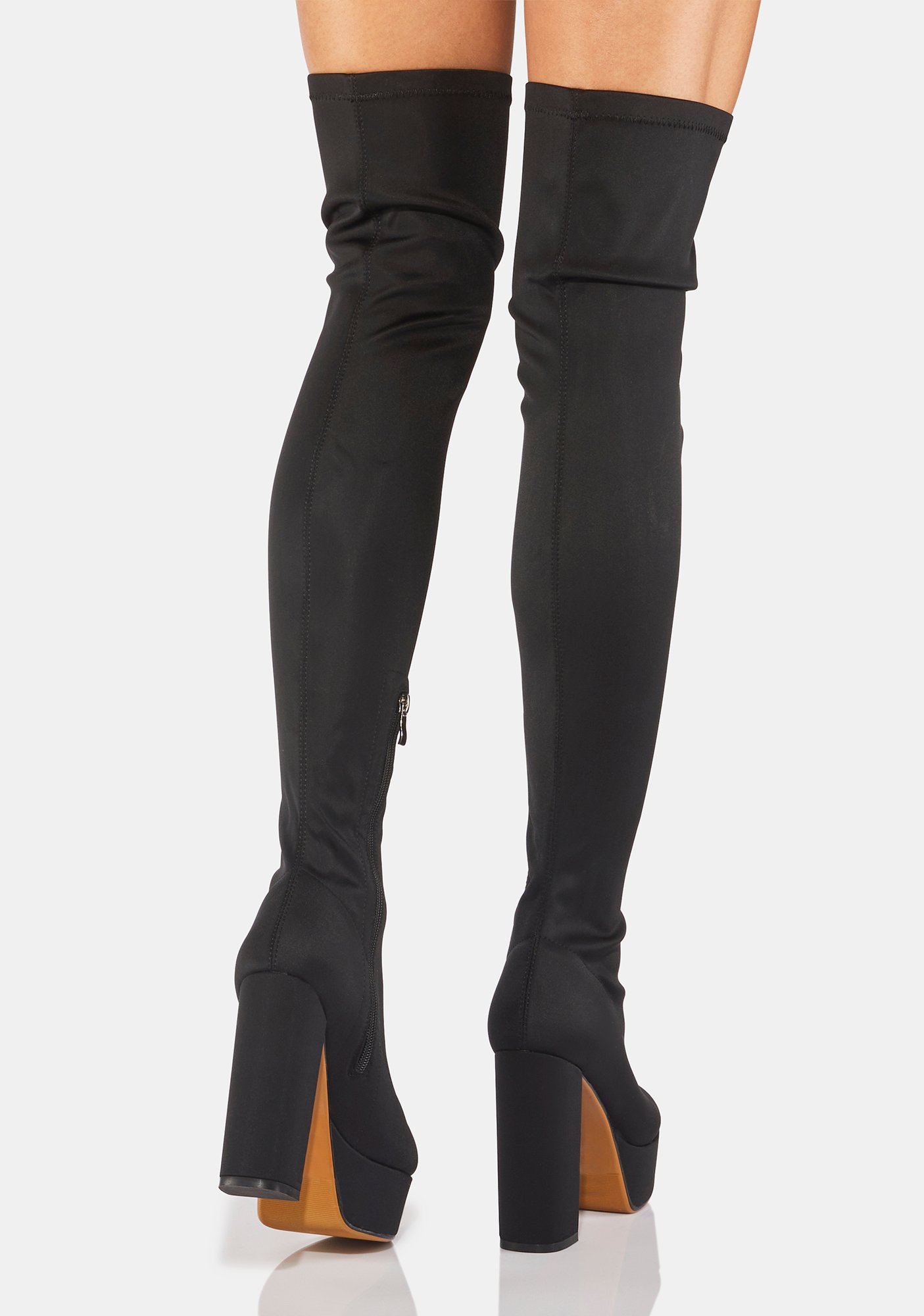 Dang Sis Thigh High Boots you stay winning! These thigh high boots feature a form-fitting construction, side zipper closures, rounded toes, block heels, and platform soles.