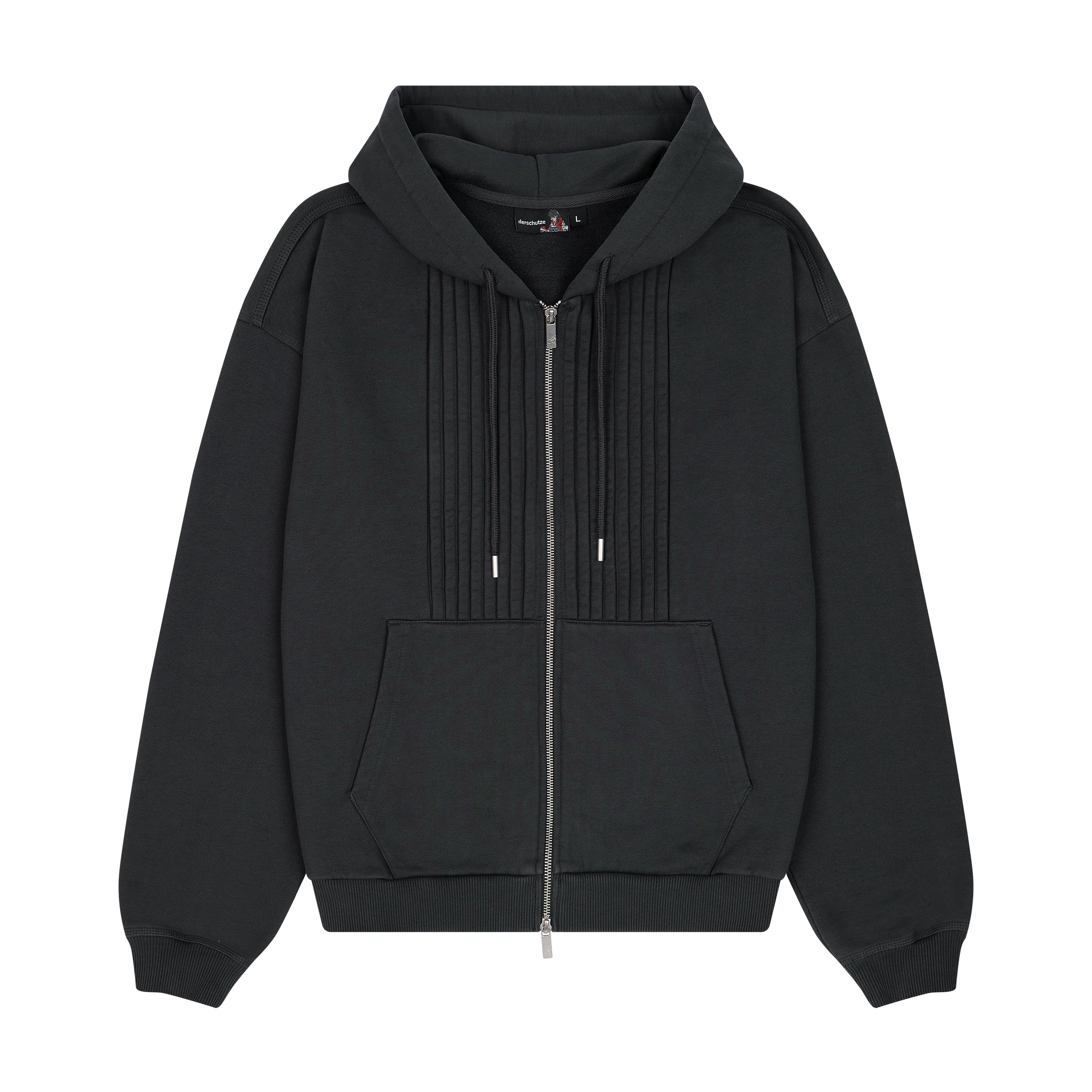 460gsm / 100% preshrunk cotton / ribbing on front / embroidery on back / with double-slided YKK zipper / with metal cord closures / fits true to size