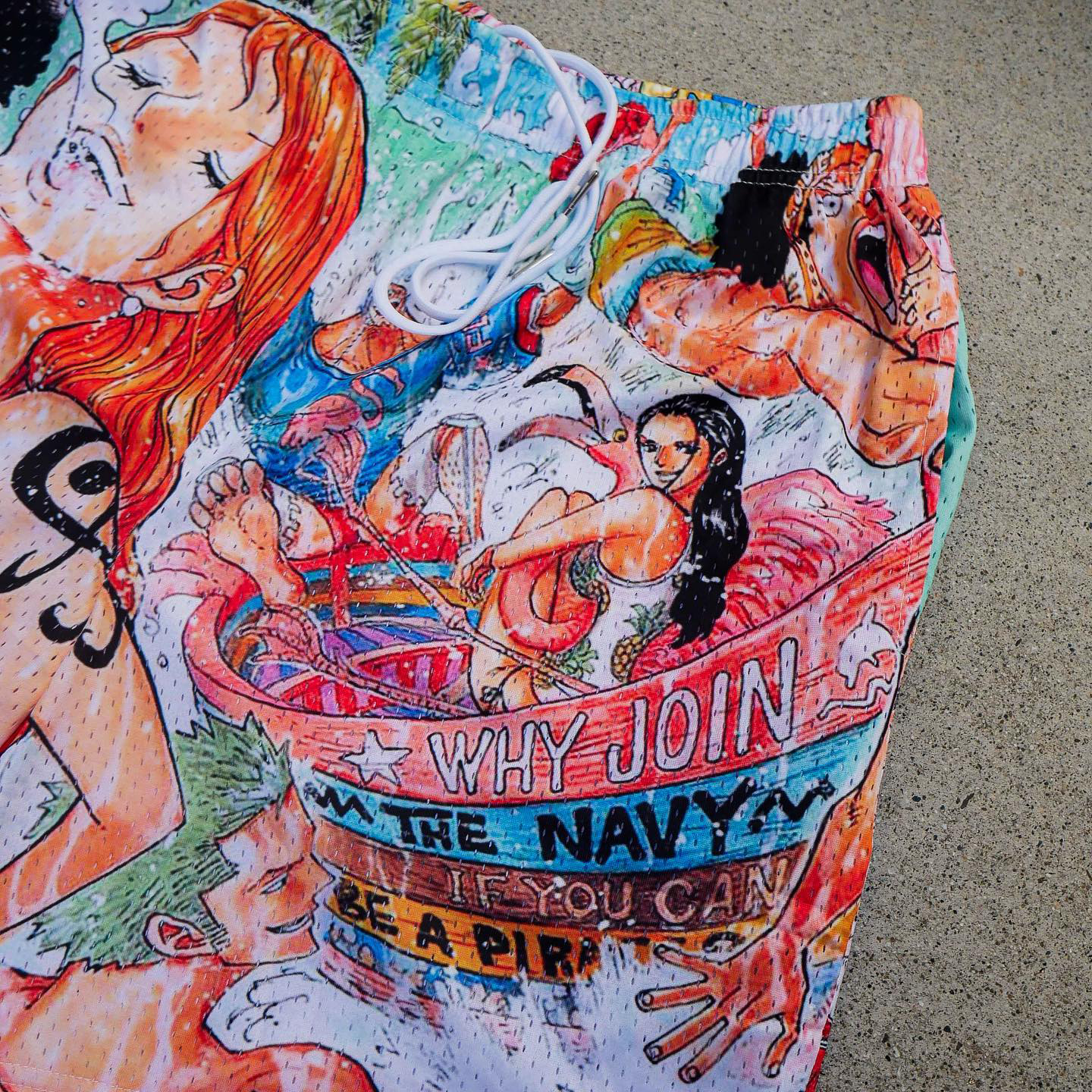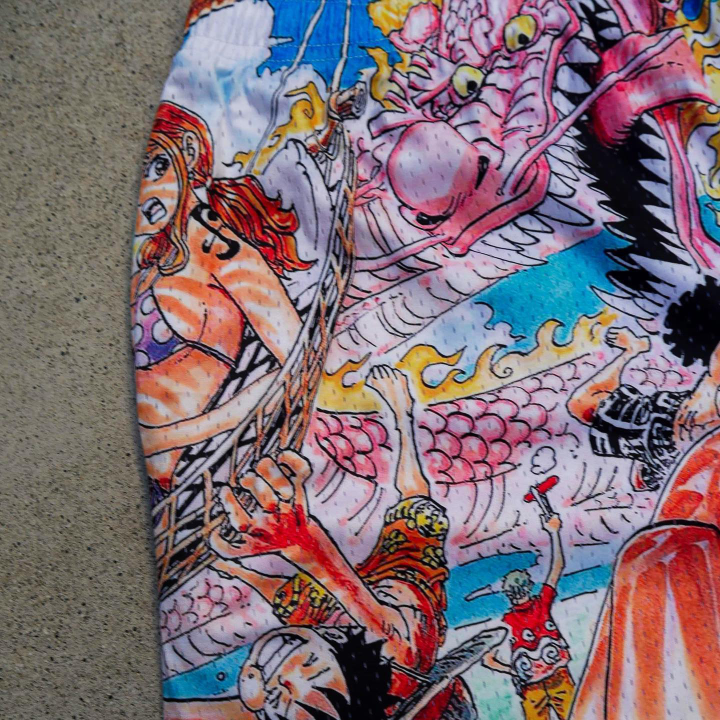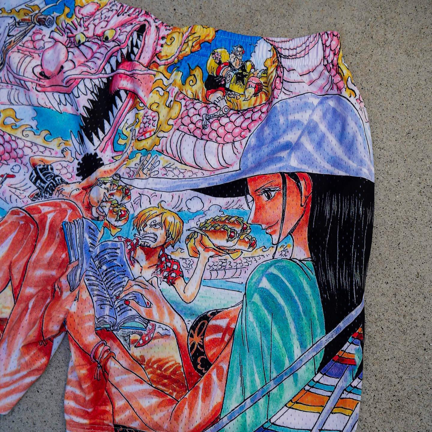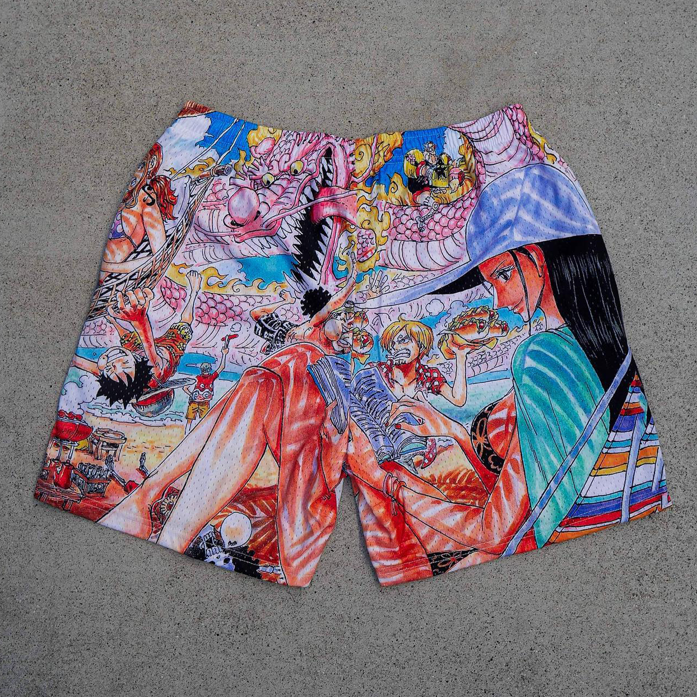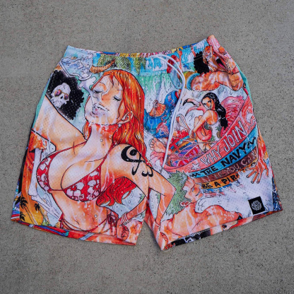 Anime print casual street mesh shorts
